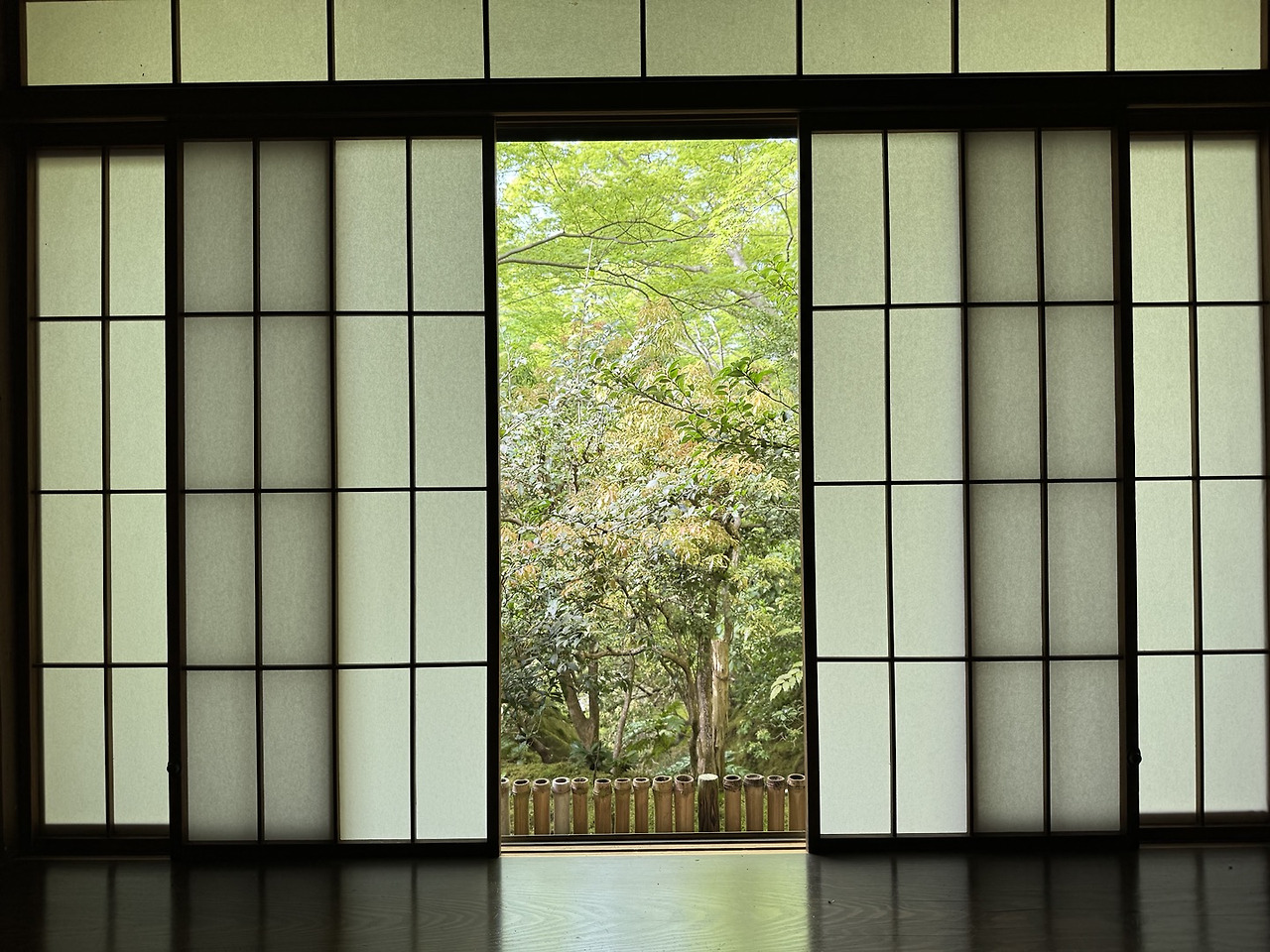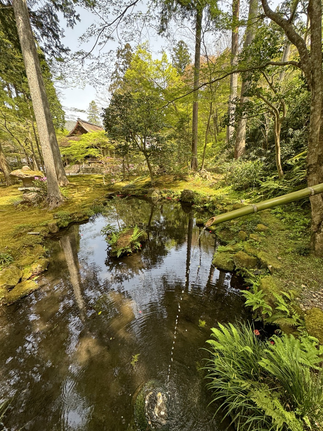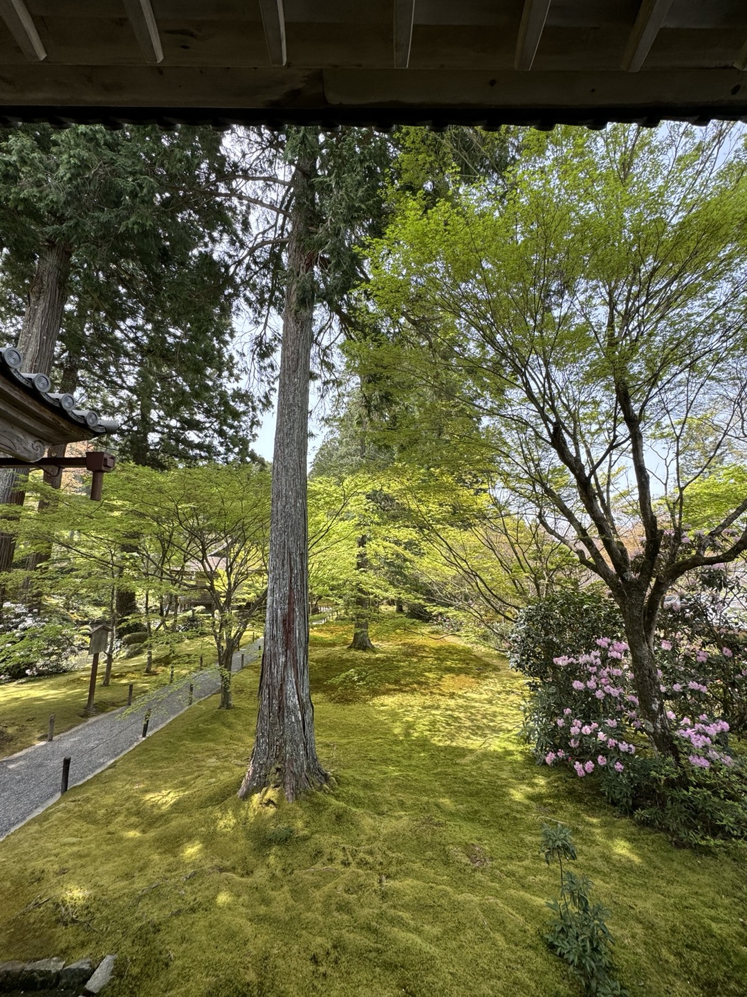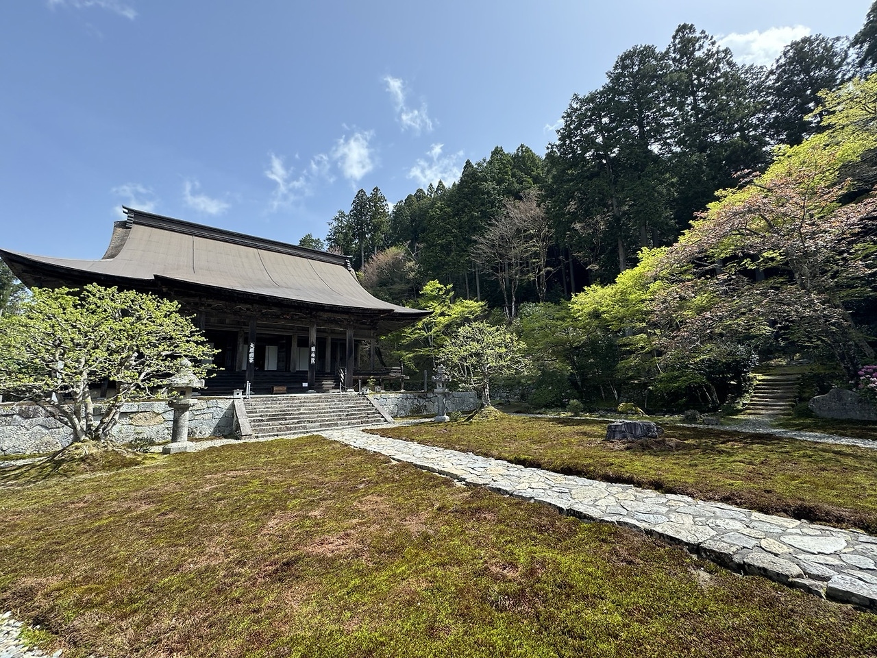 1012년에 지어졌고, 액자식 정원의 형태로 창 너머로 700년 된 소나무를 감상할 수 있는 불교 사원이다. 이곳만이 이날의 정해진 목적지였다.