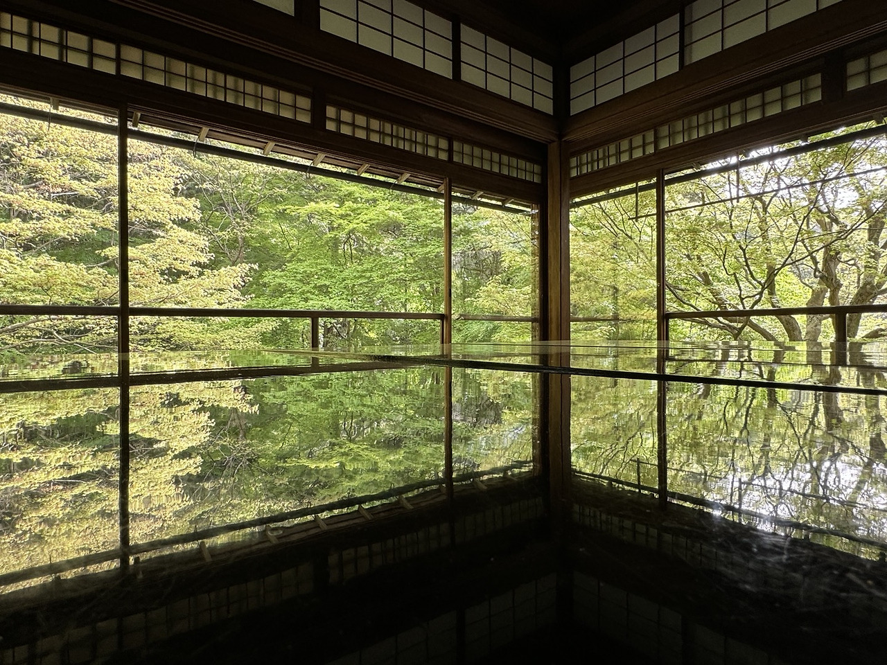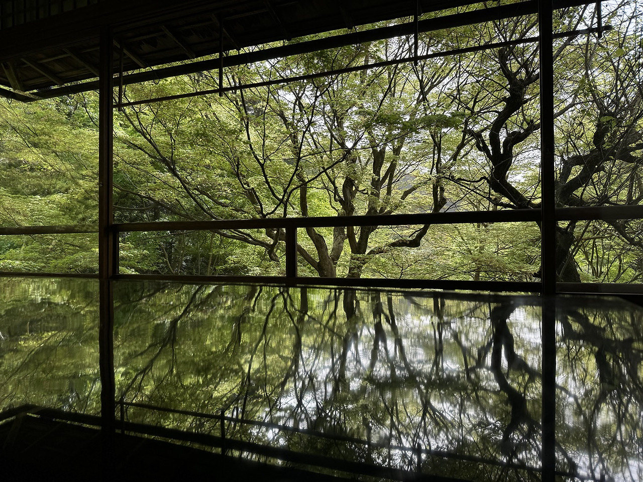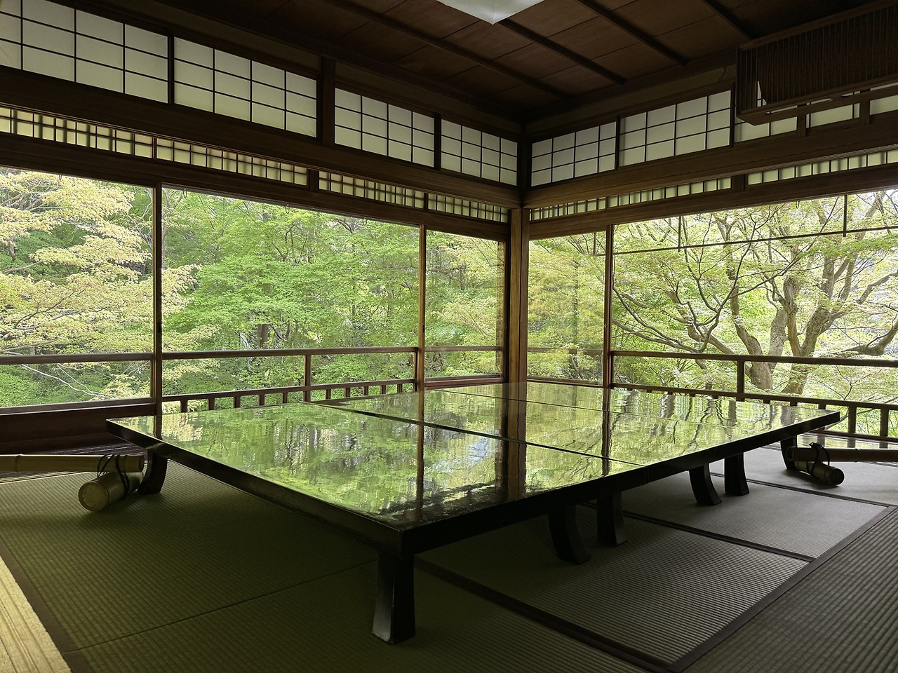 멀리서 볼 땐 그저 탁자일 뿐이라고 생각했던 것이 계절마다 바뀌어가는 자연의 모습을 비추는 거울인 셈이었다. 루리코인(瑠璃光院), 유리광원이라는 그 이름에 비밀이 숨어 있었던 것이다.