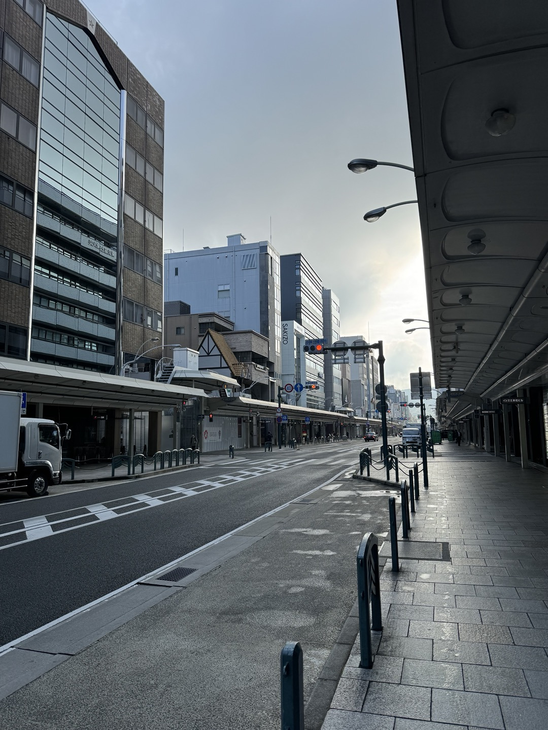 전날 저녁에는 오고 가는 사람들로 북적이던 가와라마치 아침 거리의 한산한 모습이 낯설었다.