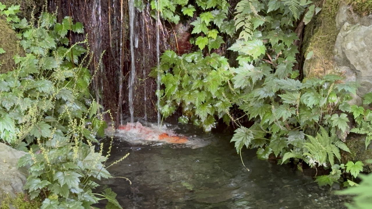 제자리에서 꼼짝 않고 떨어지는 물을 온몸으로 맞고 있던 잉어를 한참이나 재밌게 구경했다.