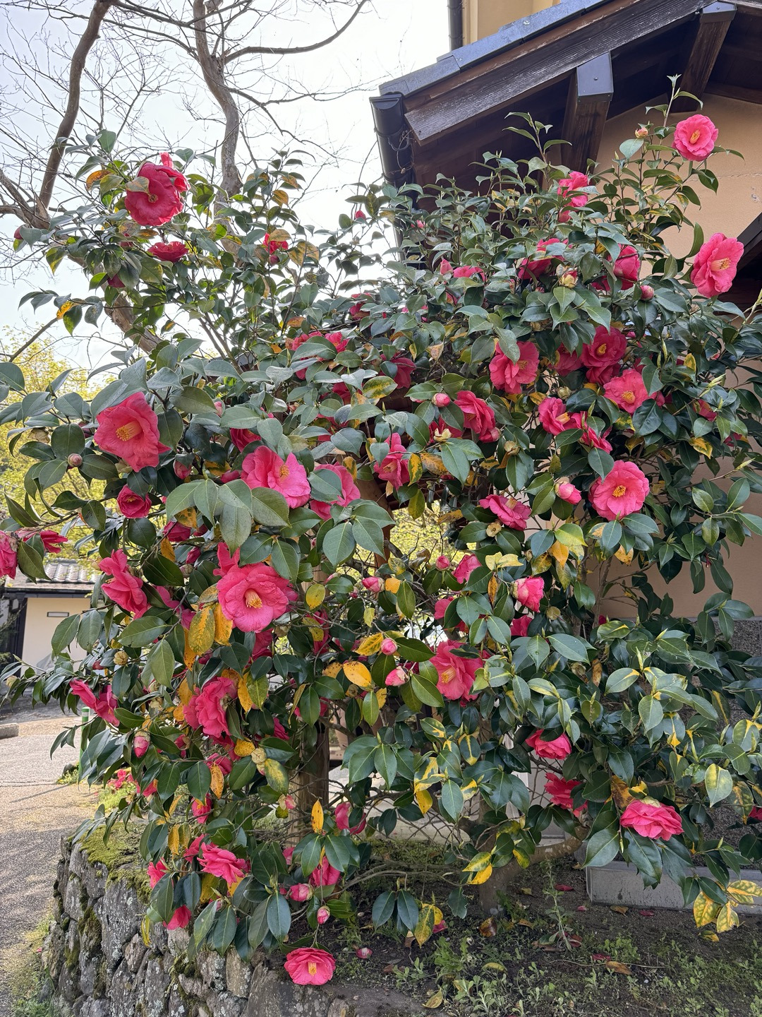 수령이 700년이나 되었다는 호센인의 소나무는 한 뿌리에서 갈라져 나온 몇 갈래의 소나무가 사방으로 팔을 뻗고 있었다. 이제는 자신의 가지 무게를 지탱하기가 어려운지 여러 개의 버팀목이 대어져 있었다.