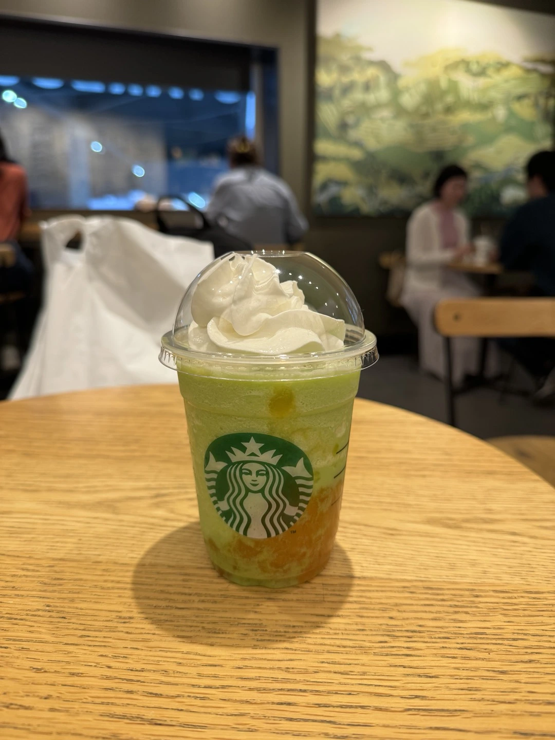 호빵맨 열차를 타고 돌아와서 시원한 고호비 메론 프라푸치노에 따뜻한 역전우동까지. 꽉 찬 하루를 보냈다.