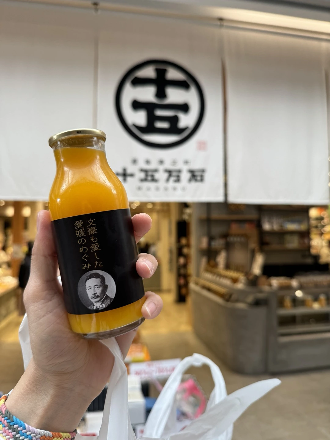 여러가지 종류 중에 소설가 나쓰메 소세키의 초상이 들어간 주스를 골라 갈증을 달랬다. (마쓰야마는 나쓰메 소세키의 고향이다.)