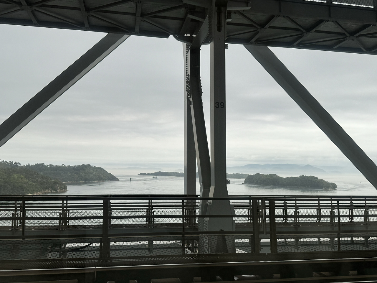 일본 열도의 주요 섬 시코쿠와 주코쿠를 잇는 철길 위에서 감상하는 크고 작은 형제 섬들.