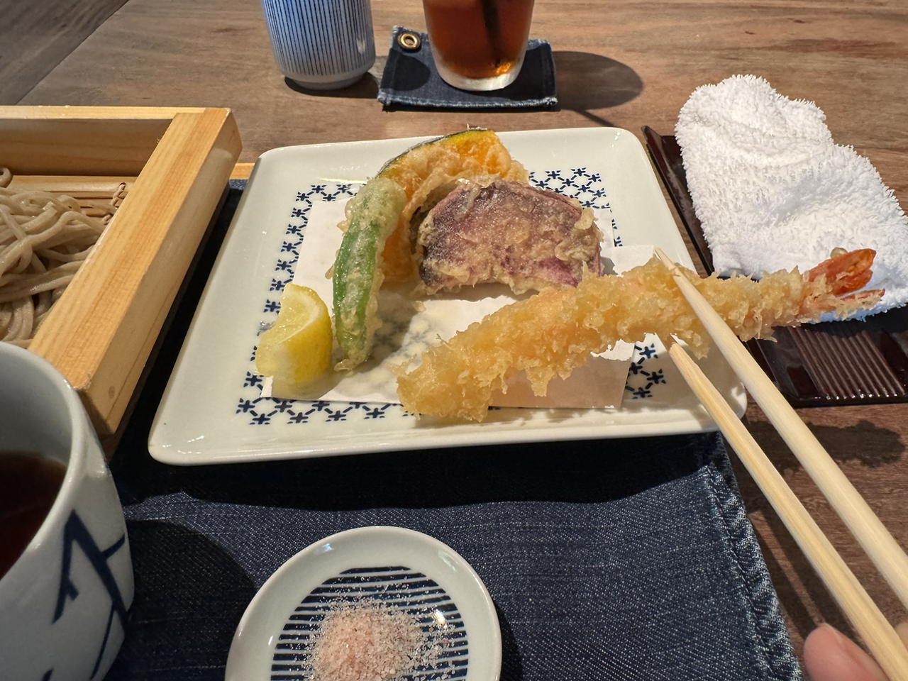 간결하지만 그윽한 고소함이 느껴지던 면과 짭짤한 쯔유, 따끈하고 바삭했던 튀김을 소금에 찍어먹는 맛이 조화로웠다.