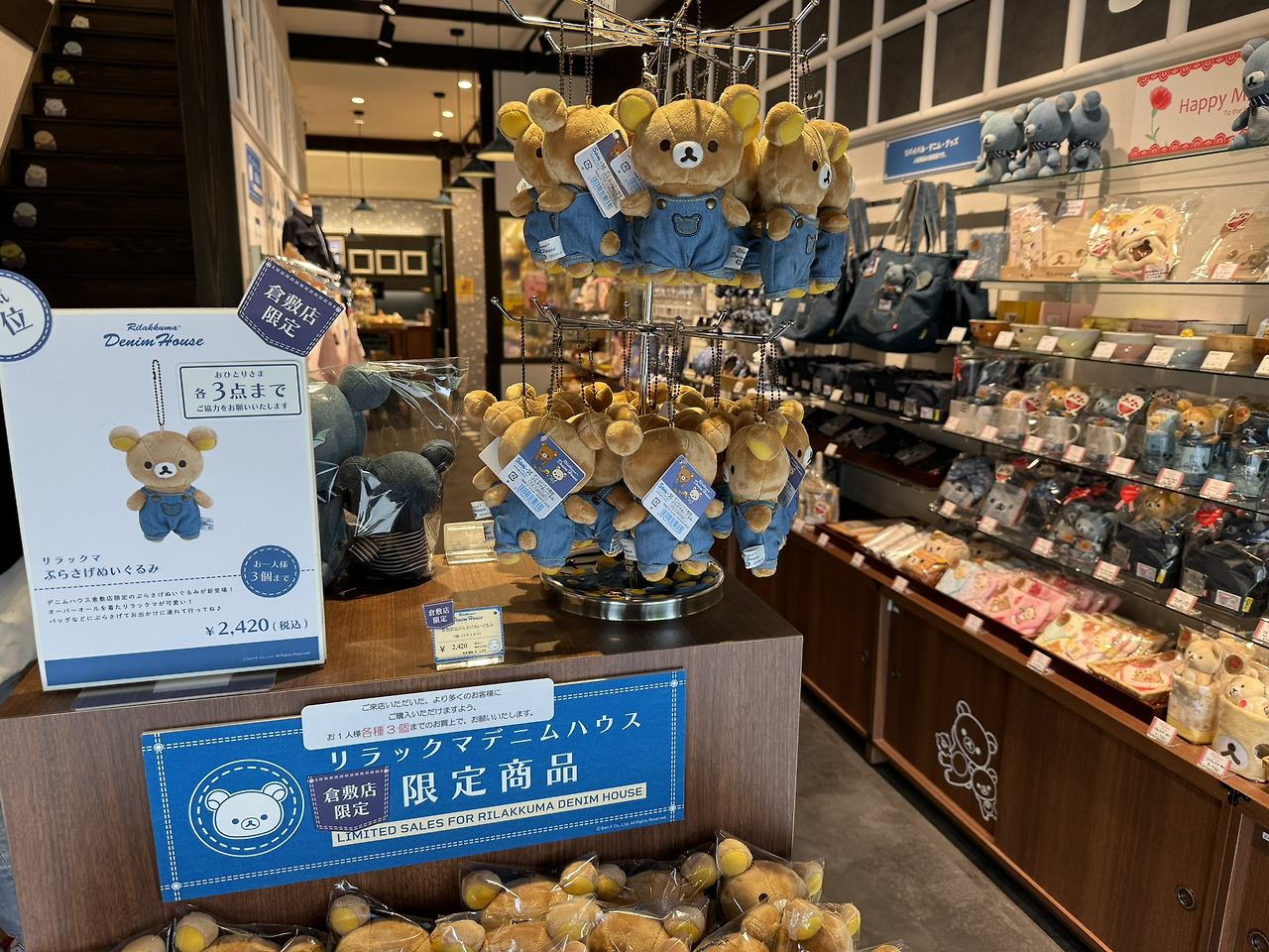 구라시키와 오카야마는 일본의 대표적인 데님 생산지이기도 하다. 데님 소재의 의류샵이 곳곳에 숨어있고, 이 미관지구 안에 있는 리락쿠마샵에서만 청바지를 입은 리락쿠마를 살 수 있다.