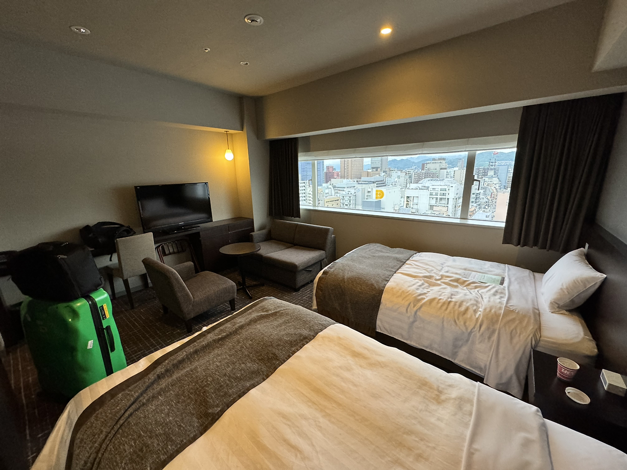 호텔에서 업그레이드받은 제일 고층의 넓은 방.
