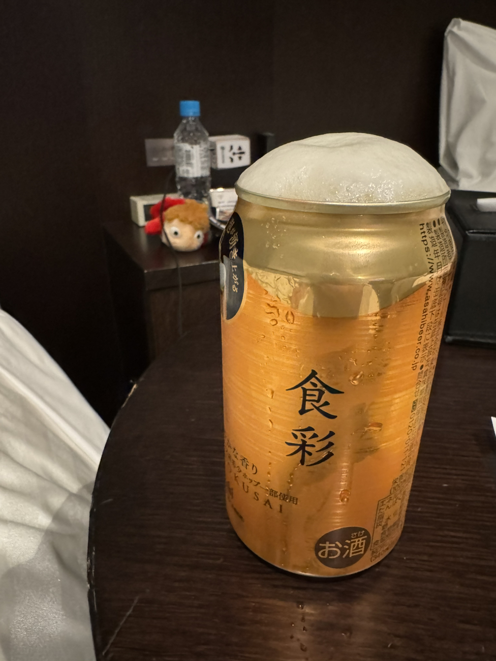 풍성한 거품에 진한 술맛이 느껴졌던 아사히 쇼쿠사이 맥주.
