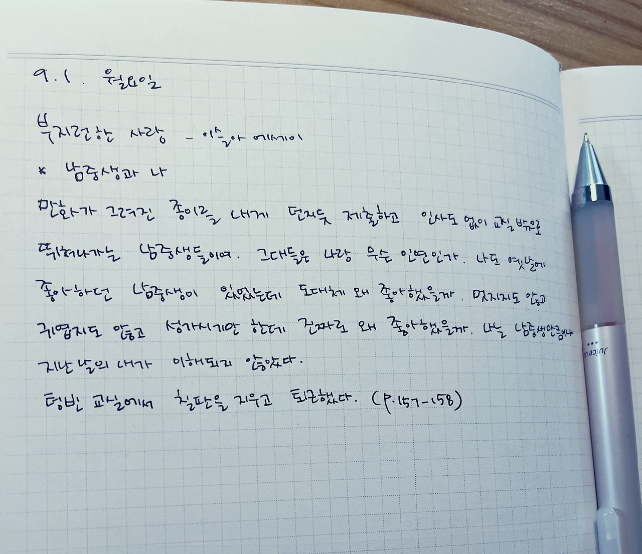 성별의 차이인지, 성격의 차이인지 모르겠다만 이해되지 않을때는 그냥 받아들이는 것이 가장 속 편하다. 결국은 그 모든 역경들은 추억으로 기억되고야 마니까. 수업때마다 심한 장난으로 나의 눈초리를 끊임없이 받았던 그 아이의 미소가 지금은 그립기도 하니 말이다.