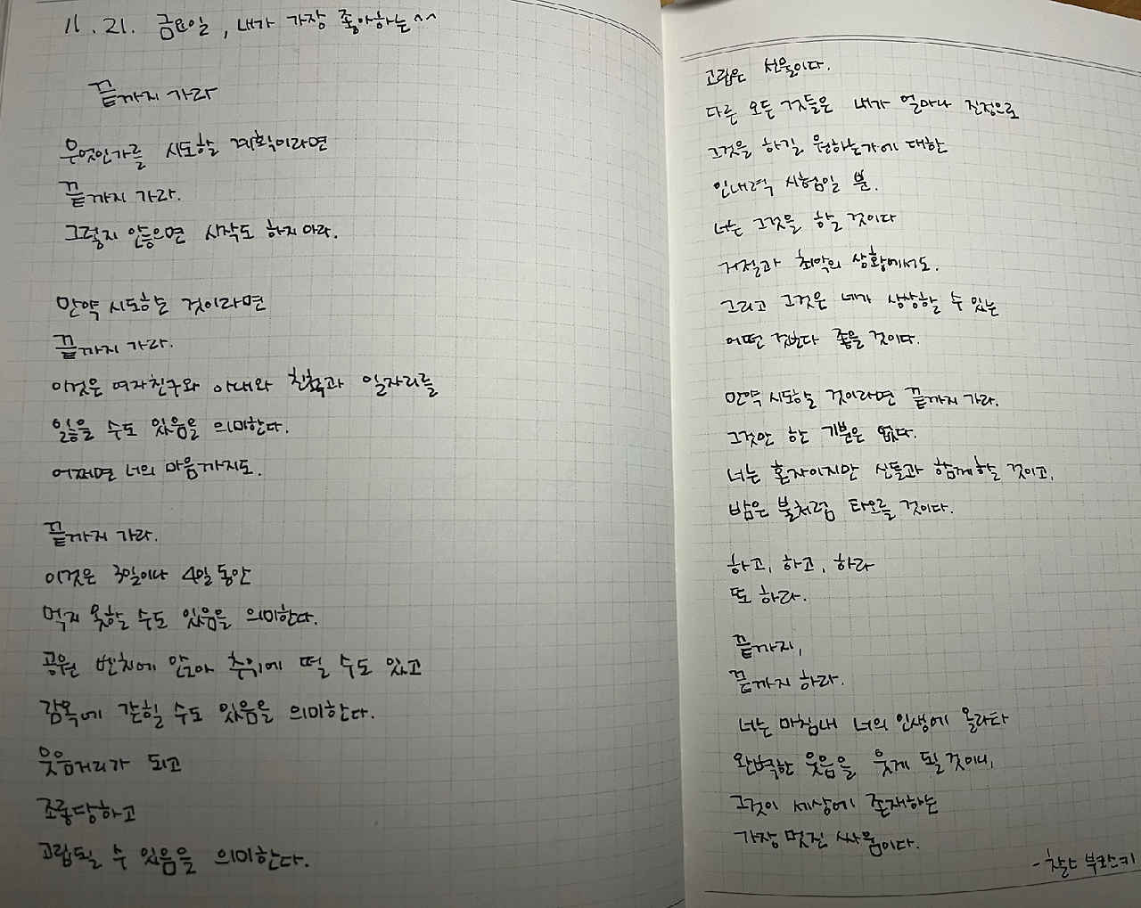나의 최애시간을 시 한편 필사하는 것으로 시작했다.