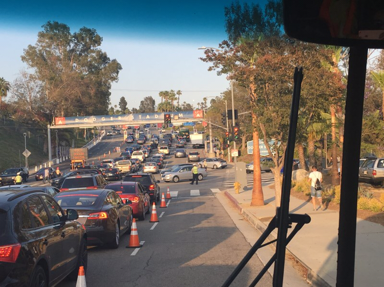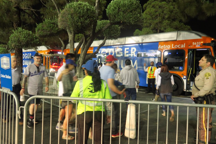 LA여행 첫 일정은 LA다저스 구장가는 것이다. 숙소에 짐만 놓고 LA다저스 구장가는 법을 물어 나왔다. 다행히 내가 내렸던 유니언스테이션에서 경기장까지 무료셔틀버스를 운행하고 있어 어렵지 않게 갈 수 있었다. 셔틀 버스가 많이 운행되어 기다리지 않고 탈 수 있었다. 야구장 가까이 오니 직관하러 온 많은 차량에 입구가 많이 혼잡했다. 무료셔틀버스가 있어서 정말 다행이였다. 올 때도 이 셔틀버스를 타고 다시 유니언스테이션으로 편하게 왔다.