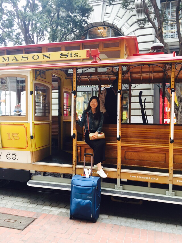 powell역에 도착하고 복잡한 계단을 빠져나오니 세상 위는 시끌벅적 힙합음악 소리에 스웩 넘치는 흑형들의 파워댄스, 무엇을 기다리는 지 긴 줄의 사람들, 번화한 시내 답게 여러 쇼핑상점들과 거리의 사람들로 북적이는 샌프란시스코다. 낯선 곳에서 정신없는 나와 달리 이름도 못 물어본 유학생 친구는 내 짐을 같이 들어주며 구글맵으로 호스텔 위치를 파악해 앞장서고 있다. 샌프란시스코는 언덕이 많다고 들었지만 막상 캐리어를 끌고 걸으려니 오르막길이 힘이 부친다. 그 와중에 나는 샌프란시스코 명물 클래식한 케이블카가 눈에 들어온다. 다음 순서를 기다리는 케이블카는 아직 사람을 태우지 않아 한산했는데 나는 첫 샌프란시스코의 기념사진을 남기고 싶어 본능적으로 ‘저 여기서 사진 한 번 찍어도 돼요?’ 하고 물어본다. 흥많은 기사아저씨는 물론이지, 여기 의자에 앉아 찍어! 옆에서 코치를 해준다. 유학생 친구도 하하 웃으며 맞아요, 여기서 꼭 한번 기념 사진 찍어야 돼요! 하며 나의 미국여행 첫 사진을 찍어주었다.