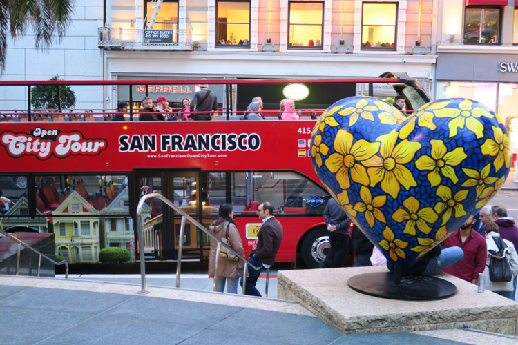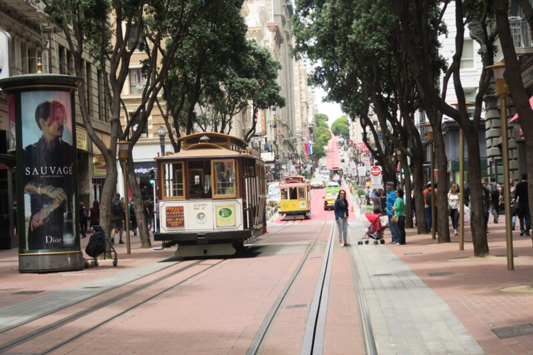 케이블카는 샌프란시스코 명물 중 하나로 북적북적한 도시적인 유니언스퀘어에서 종소리가 나는 아날로그 옛 향수를 불러일으키는 교통수단이다. 피셔맨워프까지 가는 케이블카를 선택한 나는 언제 탈지 모르는 케이블카 줄에서 사람구경도 하고 피셔맨스워프에서 무엇을 해야하는지 열심히 검색을 하며 시간을 보냈다. 한참을 기다린 끝에 케이블카를 배경으로 사진을 몇장 찍고나니 출발한다. 케이블카 의자에 앉았다. 오래 서 있던 피로가 풀리는 것 같았다. 편안히 앉아서 바깥 풍경을 보며 샌프란시스코를 하나하나 눈에 담았다.