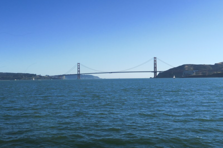 푸른 바다 위로 주홍빛 거대한 다리 금문교는 샌프란시스코의 상징이다. 샌프란시스코를 소개할 때 빠지지 않는 금문교를 걸어 건너보려고 한다. 골든게이트 해협을 건너며 쎈 바닷바람이 머리를 흐트러뜨렸지만 기분좋은 바람이였다. 이 거대한 다리를 건너며 바라보는 샌프란시스코가 참 좋았다. 역시 낭만적이다.햇볕이 점점 더 뜨거워져서 걷는 것이 힘들었지만 풍경이 더위를 이긴다.
