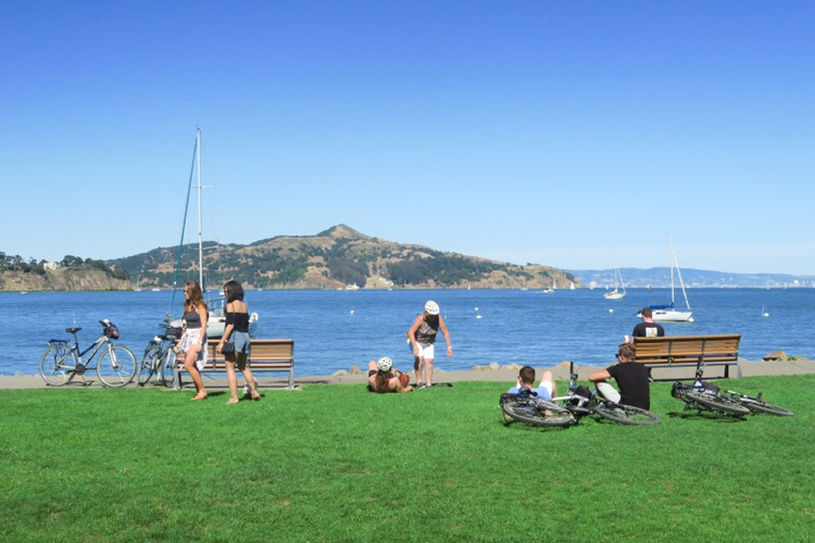 금문교가는 이 뮤니는 종착지가 금문교라서 긴장할 필요는 없었다. 한참을 달리다 보니 저 멀리 푸른 물빛이 보인다. 자전거 도로를 따라 자전거 하이킹하는 사람들 모습이 보인다. 내가 여행을 좋아하고 활동적이라서 당연히 자전거를 탈 수 있을거라고 생각하지만, 나는 의외로 자전거를 못타고 수영도 못한다. 나도 내가 왜 못 배웠는지 여행을 다닐 때마다 아쉽다. 이번엔 꼭 자전거를 배우고 여행오려고 했는데 또 못 배우고 말았다. 이번 여행을 준비하면서 피셔맨스워프부터 자전거를 빌려 금문교까지 하이킹해보려고 했었는데 결국 이렇게 버스를 타고 이동한다. 이런 따가운 날씨에 자전거를 타고 몇 킬로미터를 달리는 건 힘들거야. 뭐 이렇게 내 마음을 달래본다. 자전거에 대한 아쉬움은 소살리토에 가서도 마찬가지였다.