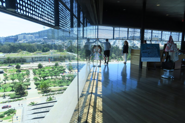 미술작품을 보는 것도 좋았지만, 미술관 전망대를 올라가 보고 싶은 마음도 컸다. 엘리베이터를 타고 전망대로 올라가보면 사방이 통유리로 되어 있어 골든게이트 공원은 물론 샌프란시스코를 내려다 볼 수 있어 좋다.