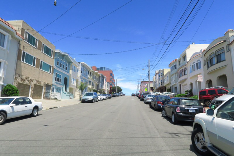 한가한 도로와 파스텔톤의 집들을 보고 있으니 꼭 어느 영화세트장 같다는 생각이 들었다. 뒤돌아보니 푸른 하늘 아래 파스텔 집들이 잘 어울렸다. 도심에서 떨어진 이 곳도 아기자기한 샌프란시스코.