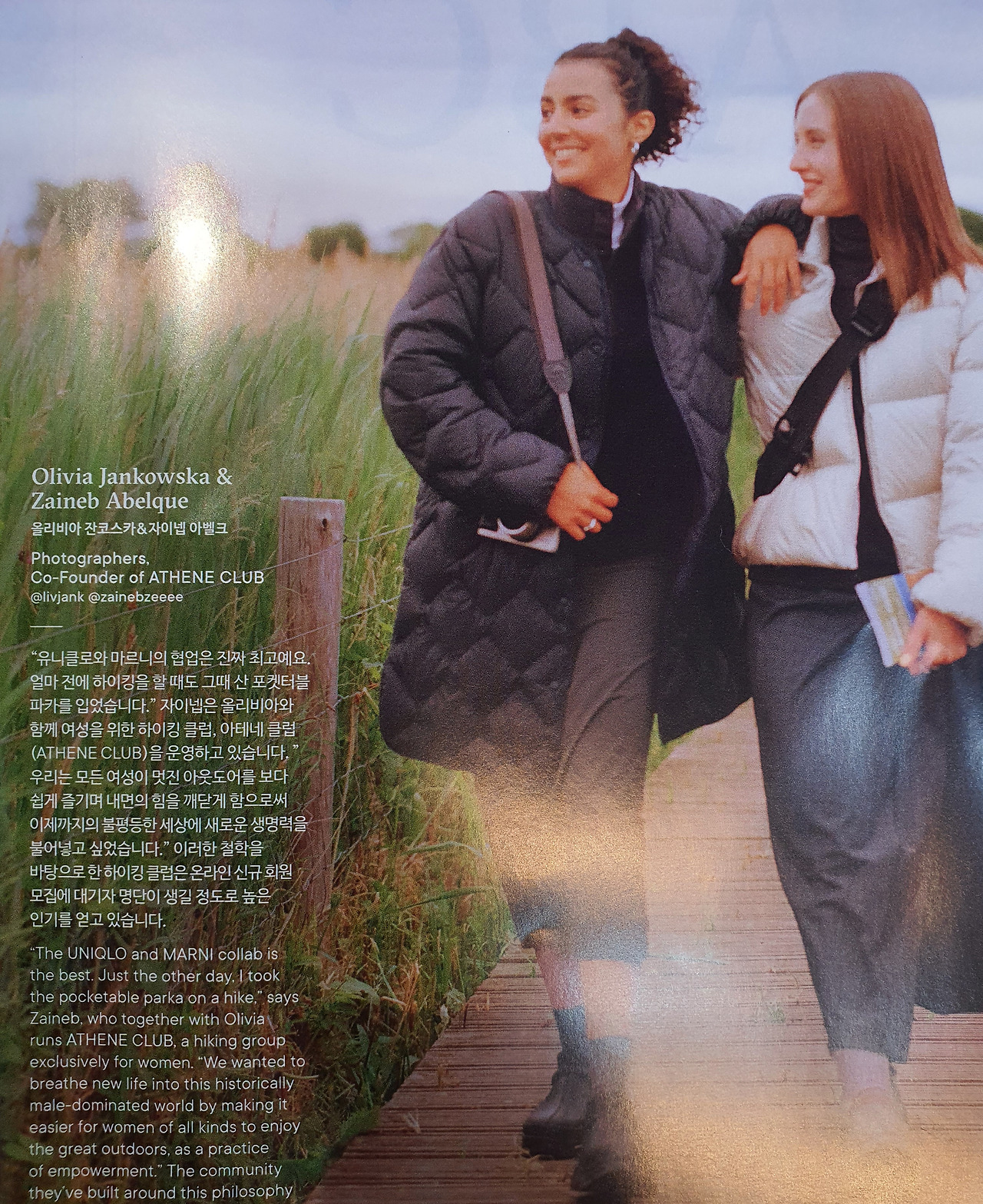 며칠 전 잡지를 보다가 영국에서 여성을 위한 하이킹 클럽(ATHENE CLUB)을 운영하고 있다는 사람들의 사진을 보았다. 설명에 따르면, 신규 회원 모집에 대기자 명단이 생길 정도로 높은 인기를 얻고 있다고 한다. 이런 삶(하이킹 클럽을 운영하는 삶)도 있구나 싶어 마음이 꿈뜰했다. 서둘러 잡지 소개글을 핸드폰 사진으로 찍어두고, 구글 검색을 해서 ATHENE CLUB 인스타그램 채널을 팔로우했다.