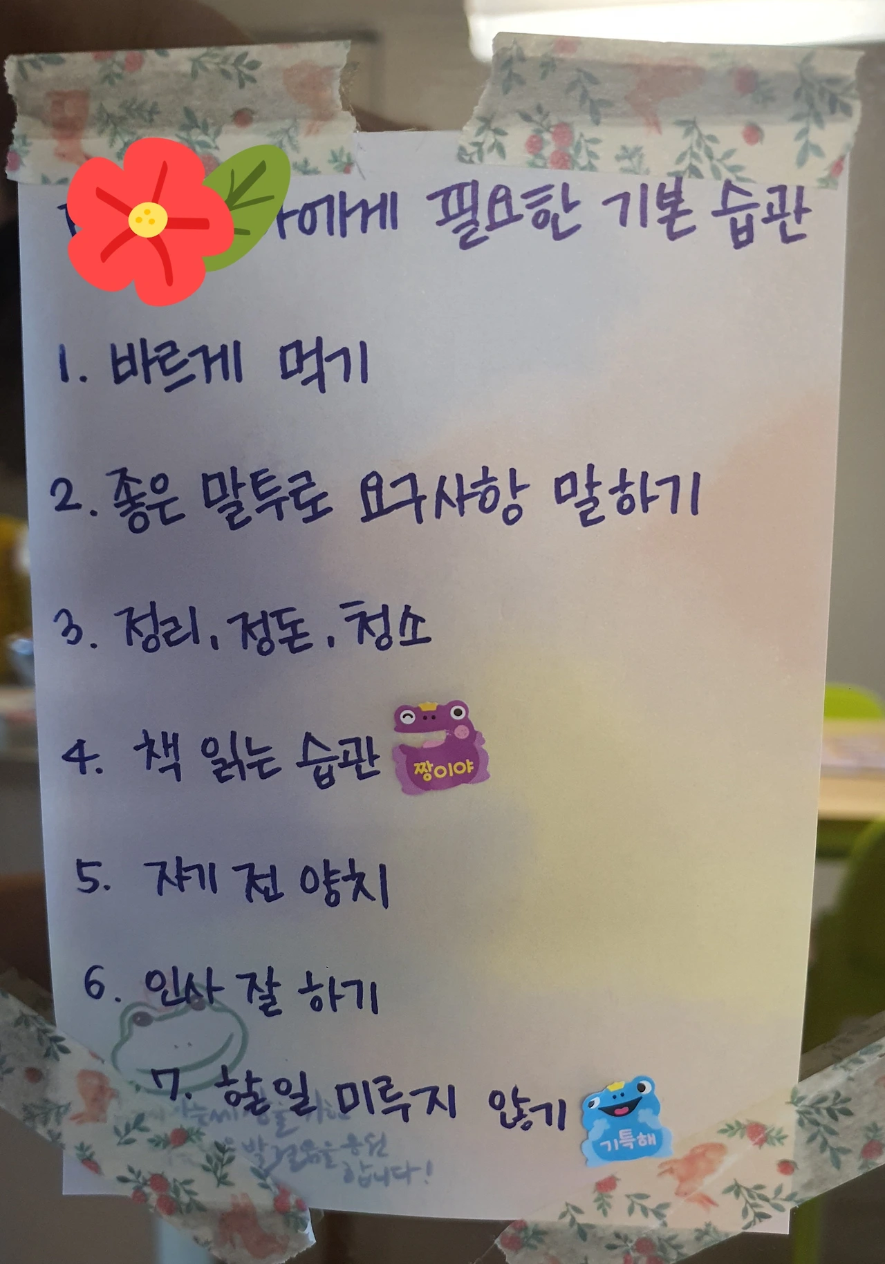 그래서 육아 목표를 '아이들의 자립'으로 정하고, 삶을 단단하게 해줄 '기본 생활 습관'을 들이는 것에만 신경쓰고 그 외에는 좀 내려놓자고 마음먹었다.