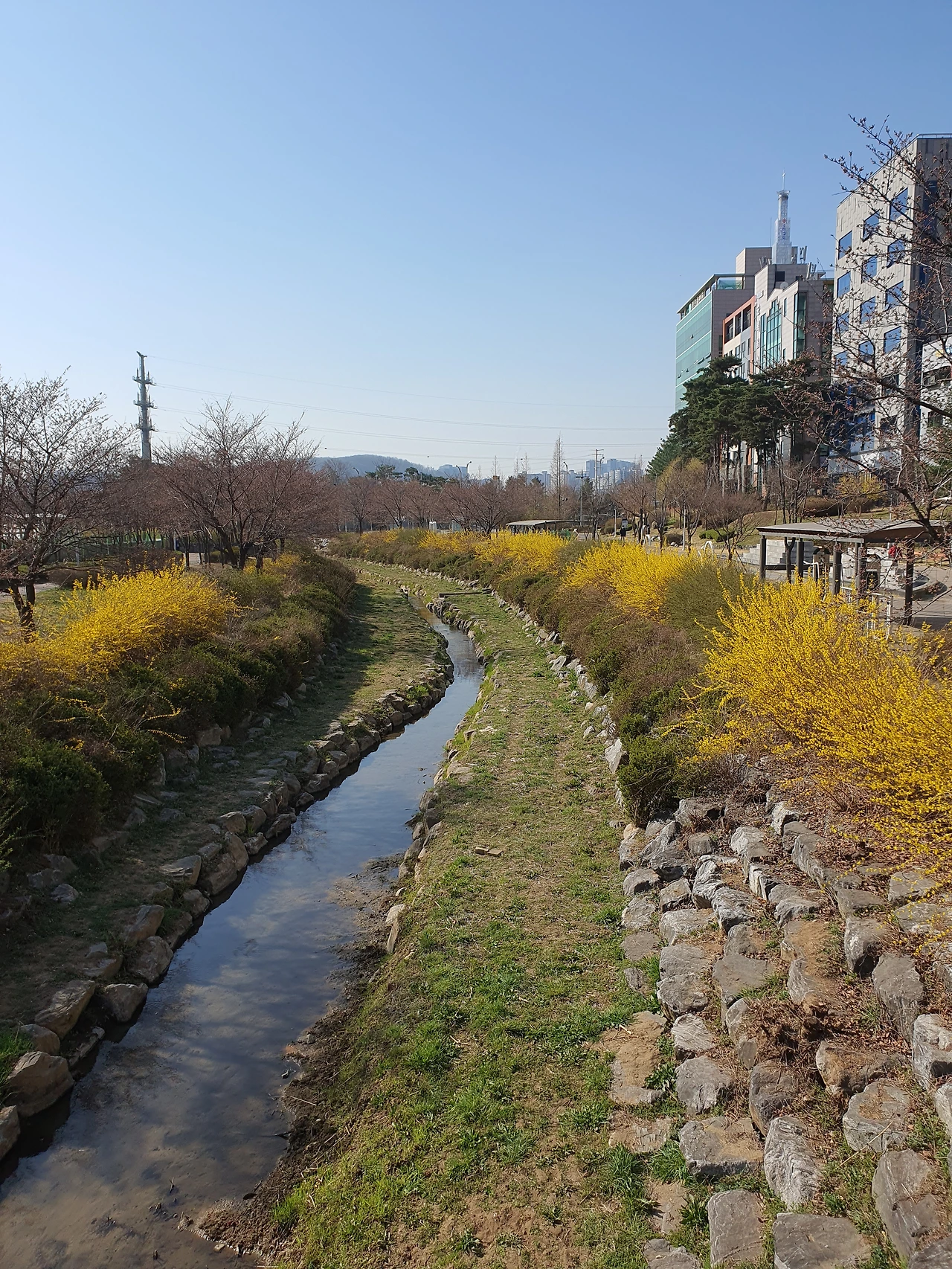 다행히 주말에 친구들, 가족들과 좋은 날씨에 야외 활동을 하며 조금씩 균형감을 회복했고, 오늘 비로소 아이 등원 후 반찬을 사러 가는 길에 짧은 산책을 만끽하고 있다. 지난 주에도 같은 코스로 반찬을 사러 갔지만, 업무로 마음이 바빠 쫓기듯이 빠르게 걷던 그 길이다.
