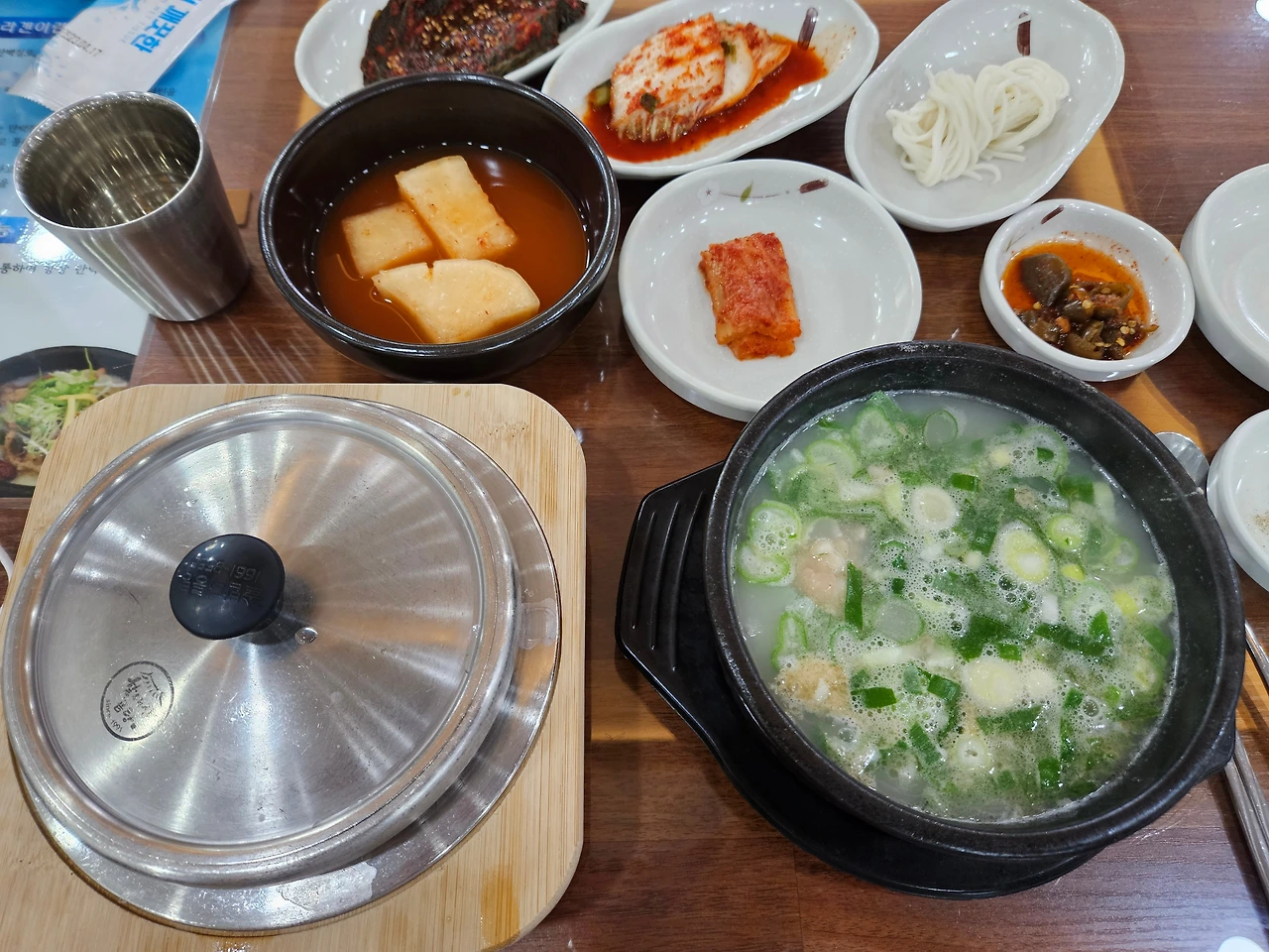 돌아갈 기차시간과 점심식사 때문에 병원을 나왔는데, 생각보다 시간이 더 빠듯해서 점심을 먹을 시간이 약간 부족했다. 원래 병원 근처 사촌동생이 추천한 곰탕집을 가려고 했는데, 시간이 빠듯하니 일단 기차역으로 가고 기차역 근처에서 대충 때울까 싶었다. 그런데 다 먹지 못하더라도 병원 근처에서 곰탕을 먹는 것이 좋겠다는 생각이 들었다. 전주까지 왔는데 추천받은 근처 식당에서 제대로 된 밥을 먹고 싶었다. 그래서 최대한 빠르게 먹고 이동하겠다는 마음으로 일단 식당에 가서 곰탕을 시켰는데, 곰탕과 함께 솥밥이 나왔다.