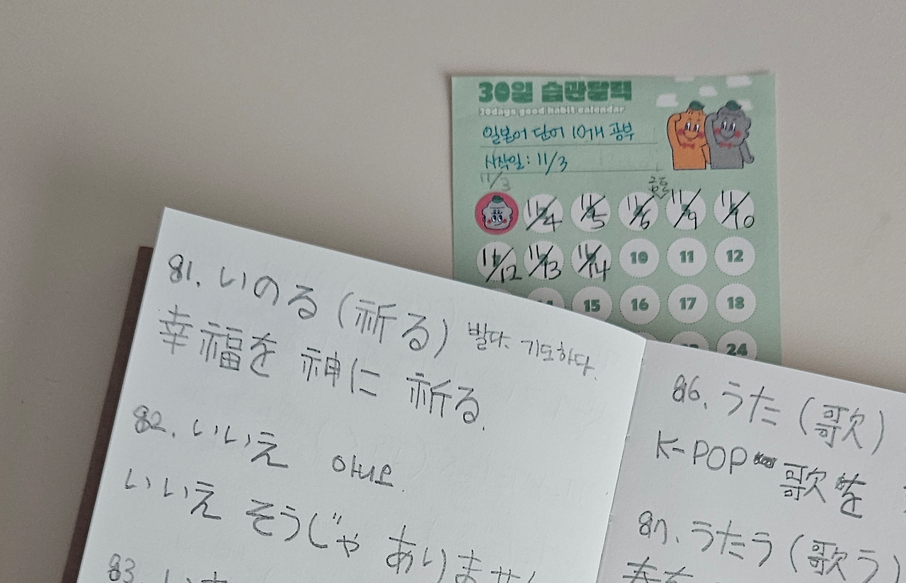 가수 성시경씨의 일본어 공부 방법이라는 영상을 본 적이 있다. 술을 마시든, 일이 늦게 끝났든, 어찌 되었건 매일 두 시간은 책상에 앉아 일본어 공부를 했다는 것이다. "단시간에 효율적으로 외국어를 잘하게 되는 방법은 없다. 공부는 엉덩이와 시간으로 하는 것"이라고 했다. 인상적이었다. 일리가 있다. 그러나 나 같이 평범한 사람은 매일 두 시간씩 공부를 하자고 마음먹으면 작심삼일은 커녕 이틀 연속도 어렵다.