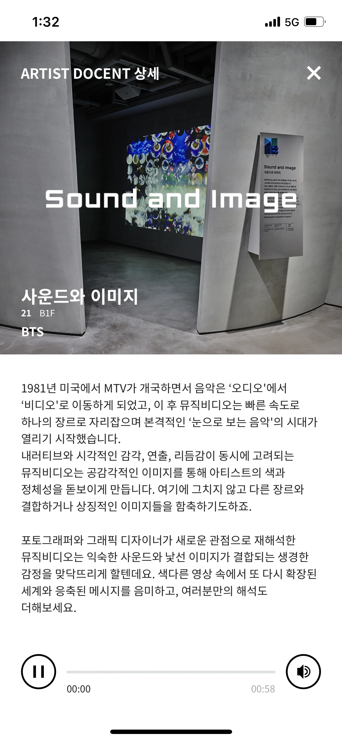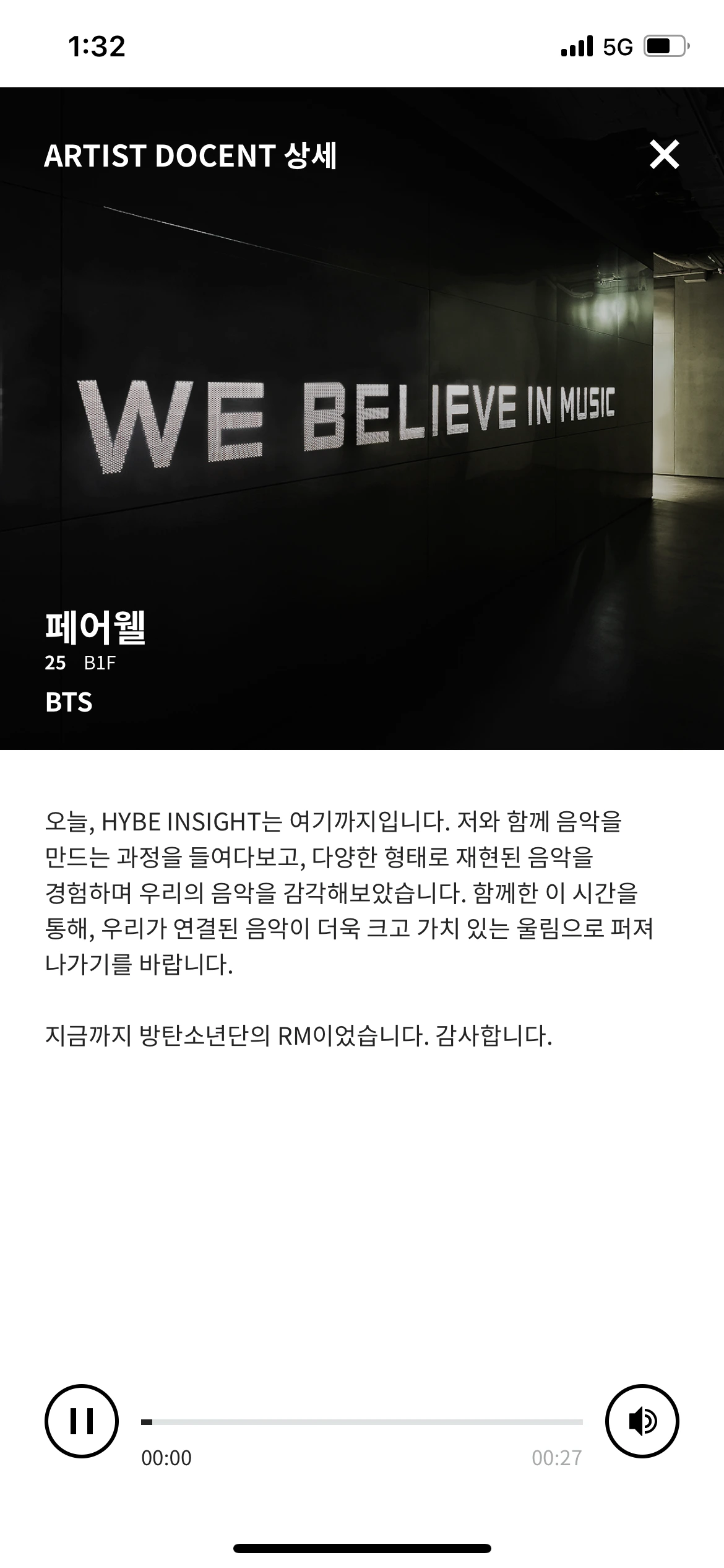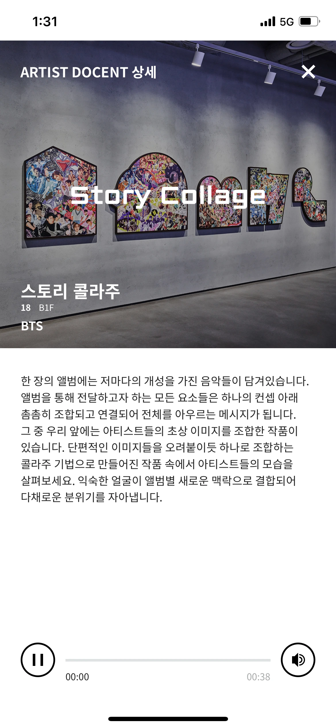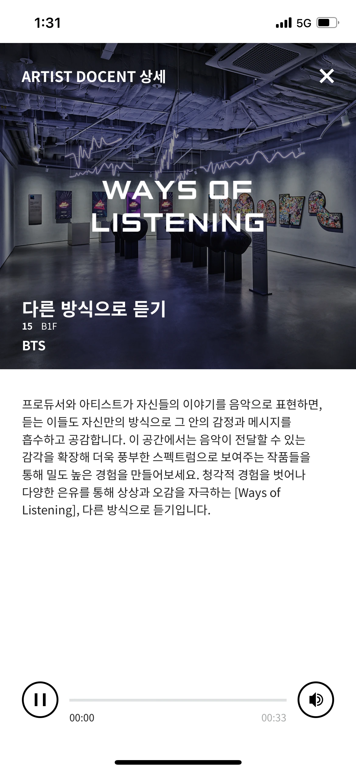 2021년 하이브 오프라인 전시를 예약하는 모바일 화면 캡쳐 입니다. 예약 내역을 관리하고 기념 카드에 인쇄할 이름을 등록하며, 현장에서는 QR코드를 스캔하려 입장합니다. 전시장에서는 아티스트를 선택하여 도슨트 서비스를 할 수 있습니다.