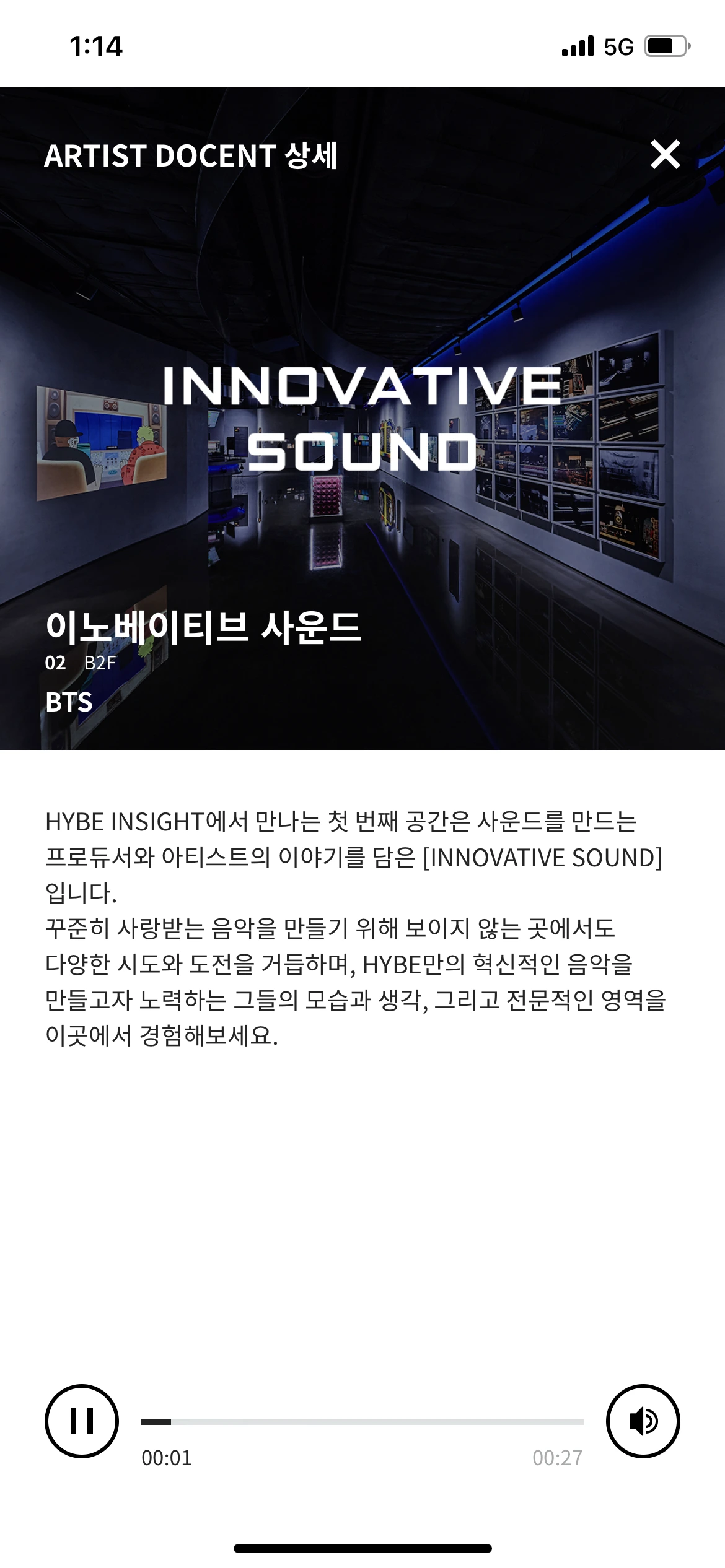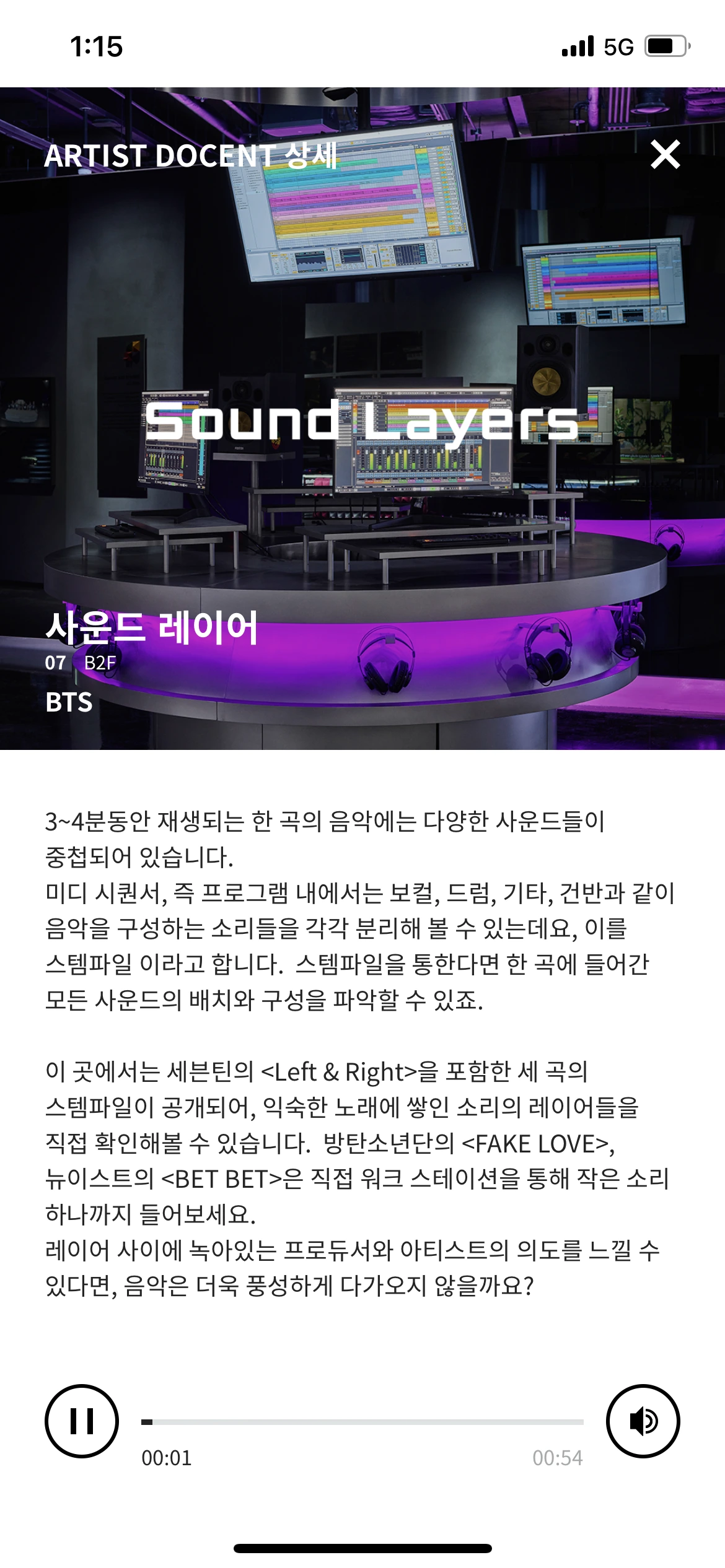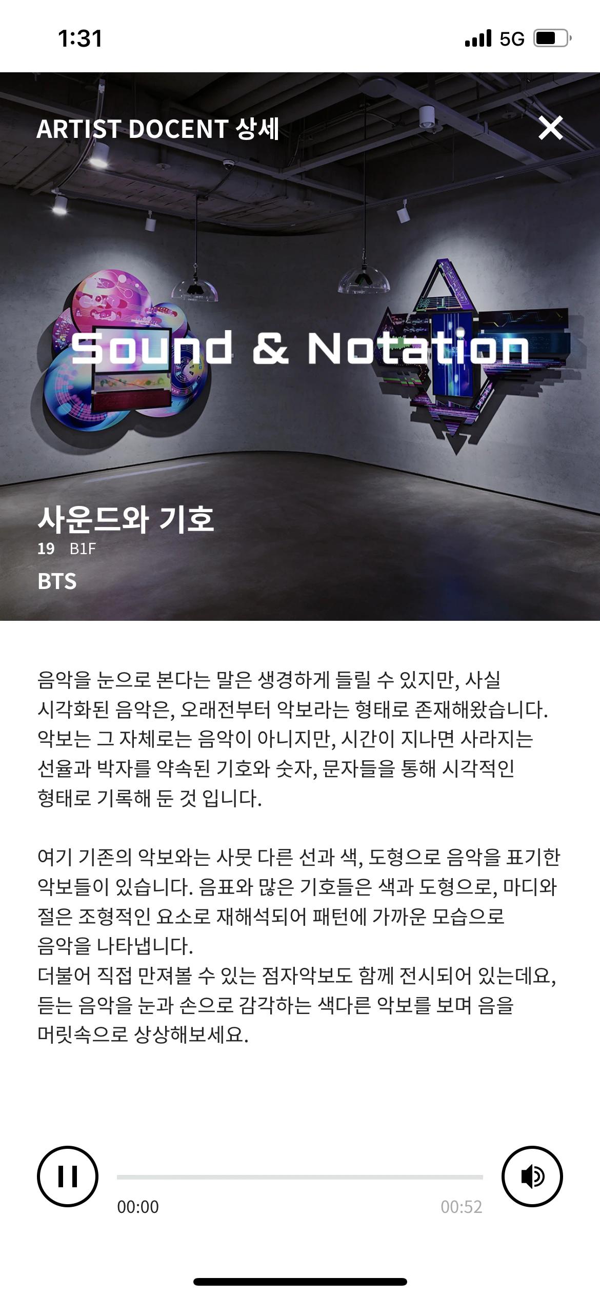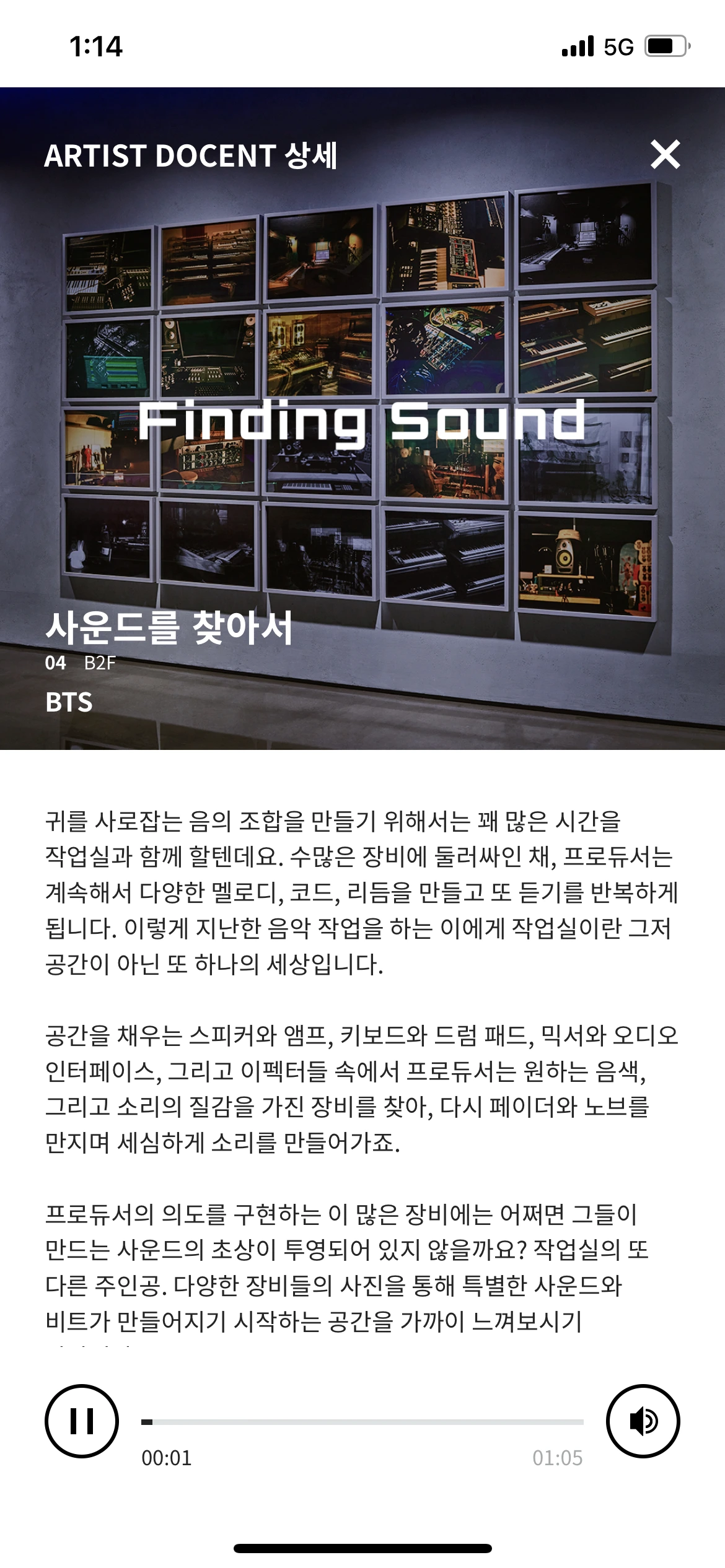 2021년 하이브 오프라인 전시를 예약하는 모바일 화면 캡쳐 입니다. 예약 내역을 관리하고 기념 카드에 인쇄할 이름을 등록하며, 현장에서는 QR코드를 스캔하려 입장합니다. 전시장에서는 아티스트를 선택하여 도슨트 서비스를 할 수 있습니다.
