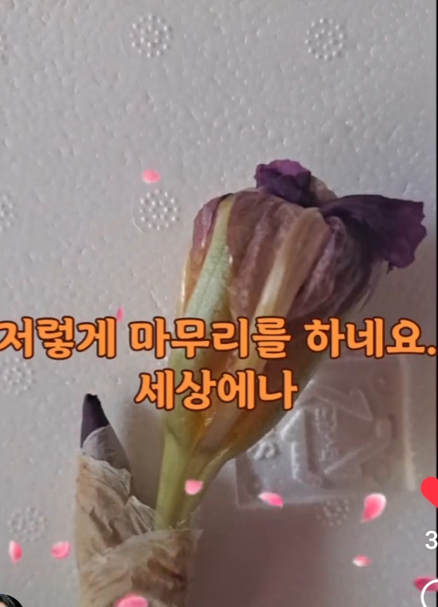 내가 붓꽃을 유독 좋아하는 이유는 그 꽃의 마지막에 있다. 모든 생명이 다 끝이 있다. 그렇게 예쁘던 장미도 시들어가면 이쁘지 않고, 특히나 목련의 마지막은 많은 아쉬움을 남다. 그런데 이 붓꽃은 그렇게 크게 꽃을 피워내도 돌아갈 땐 몸을 다 말아서 정말 깨끗하게 정리한다. 동그란 공깃돌처럼 작아진다. 꽃꽂이를 해보면, 어떤 꽃은 바닥에 꽃가루가 떨어진 아이들, 꽃잎이 낱낱이 시들어 바닥에 떨어진 아이들도 있다.