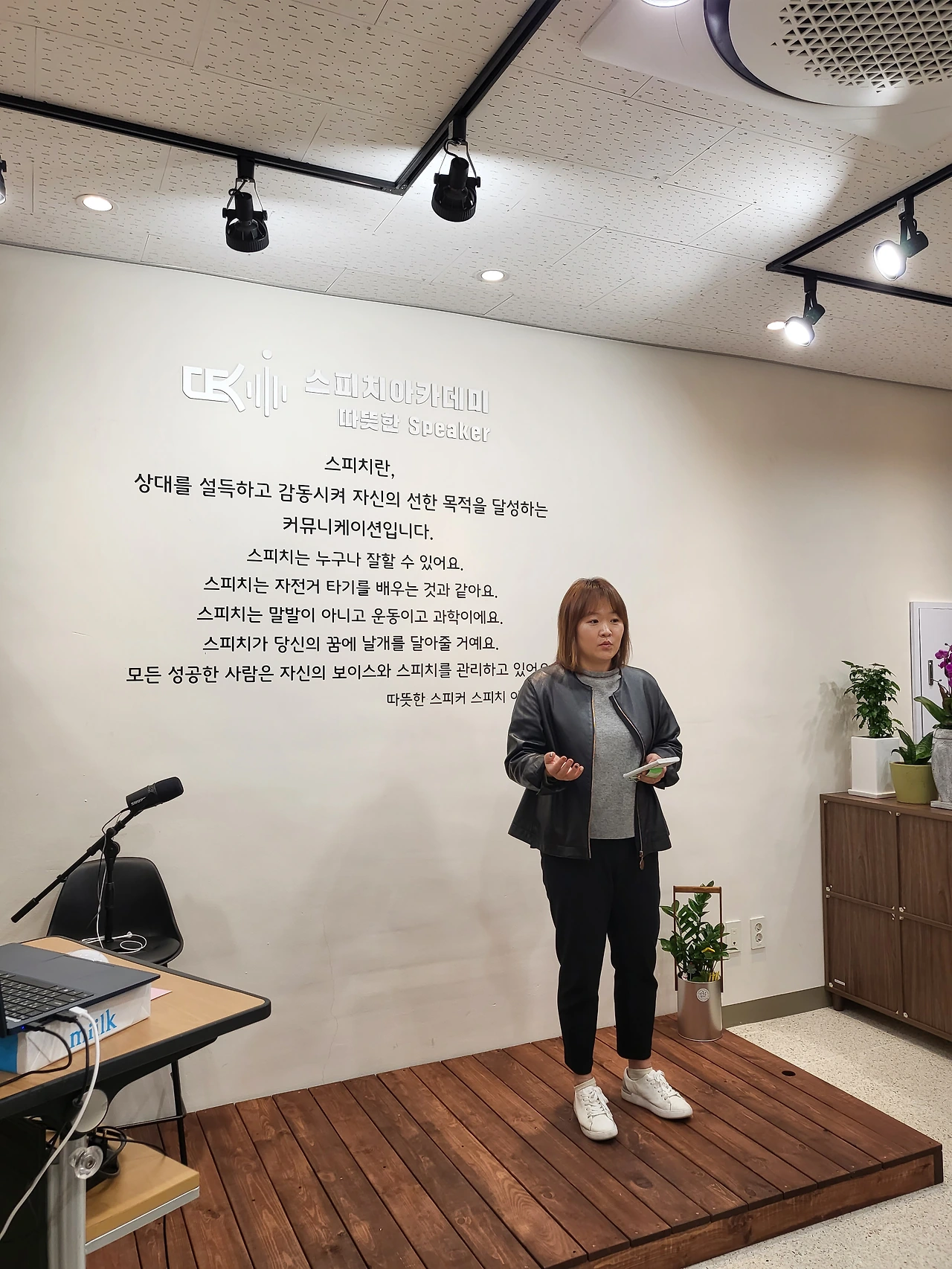 미국에서 1924년 시작된 '토스트 마스터즈'라는 영어 스피치 클럽이 있다고 해요. 현재는 143개국의 국가에서 36만 명이 넘는 회원들이 활발하게 활동 중이고 우리나라도 지금 79개 클럽이 운영되고 있다고 합니다. 누구나 회원이 될 수 있으며 자신의 콘텐츠를 다른 사람들 앞에서 발표하는 스피치 모임인데요 청중 앞에서 말하기 능력과 리더십 능력을 키우기 위한 교육 프로그램이라고 하더라고요. '따스라'는 거기서 영감을 얻은 것은 아니지만 따뜻한 스피커의 '따스라'와 목적이 비슷해서 발견 후 무척 반가웠어요. 한 달 전 오픈한 저만의 공간 광교의 '따뜻한 스피치 아카데미'가 그러한 장소가 되기를 원한답니다!