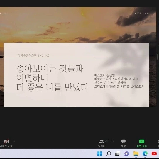 재미난 경험이었다. 20대부터 60대까지 46명이 강연제목만 보고 감동이 왔다며 신청을 했고 시간이 되자 줌으로 하나 둘 걸어 들어왔다.