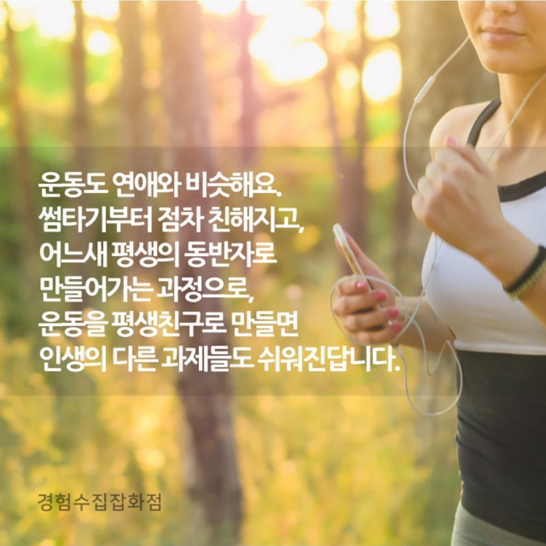 인생의 품위는 건강해야 비로소 이루어지는 거야. 운동은 돈을 따로 써도 될 만큼 중요한 거라고"
