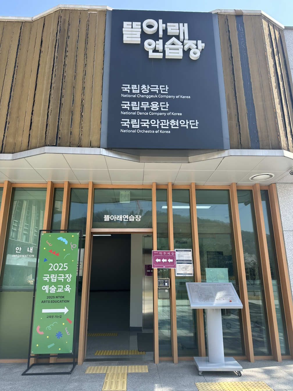 봄 풍경에 취해 산책을 마치고 나니, 바람과 햇살에 잘 마른 마음이 뽀송뽀송하다. 시끄러운 걱정, 복잡한 생각일랑 잠시 털어내고 벚꽃처럼 환하게 웃는 친구와 함께 '뜰아래 연습장'에 입성한다. 연습장 입구에 커다랗게 쓰여있는 글자, '국립창극단, 국립무용단, 국립국악관현악단'. 지난날 나에게 황홀한 무대를 선사해 준 그들이 땀 흘리며 연습에 몰두했을 바로 그 공간. 내가 애정하는 창극과 한국무용 무대의 뒷모습을 엿보는 듯한 기분에 묘한 긴장감과 설렘을 안고 조심스레 연습장으로 향했다.