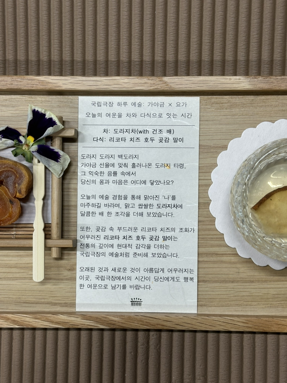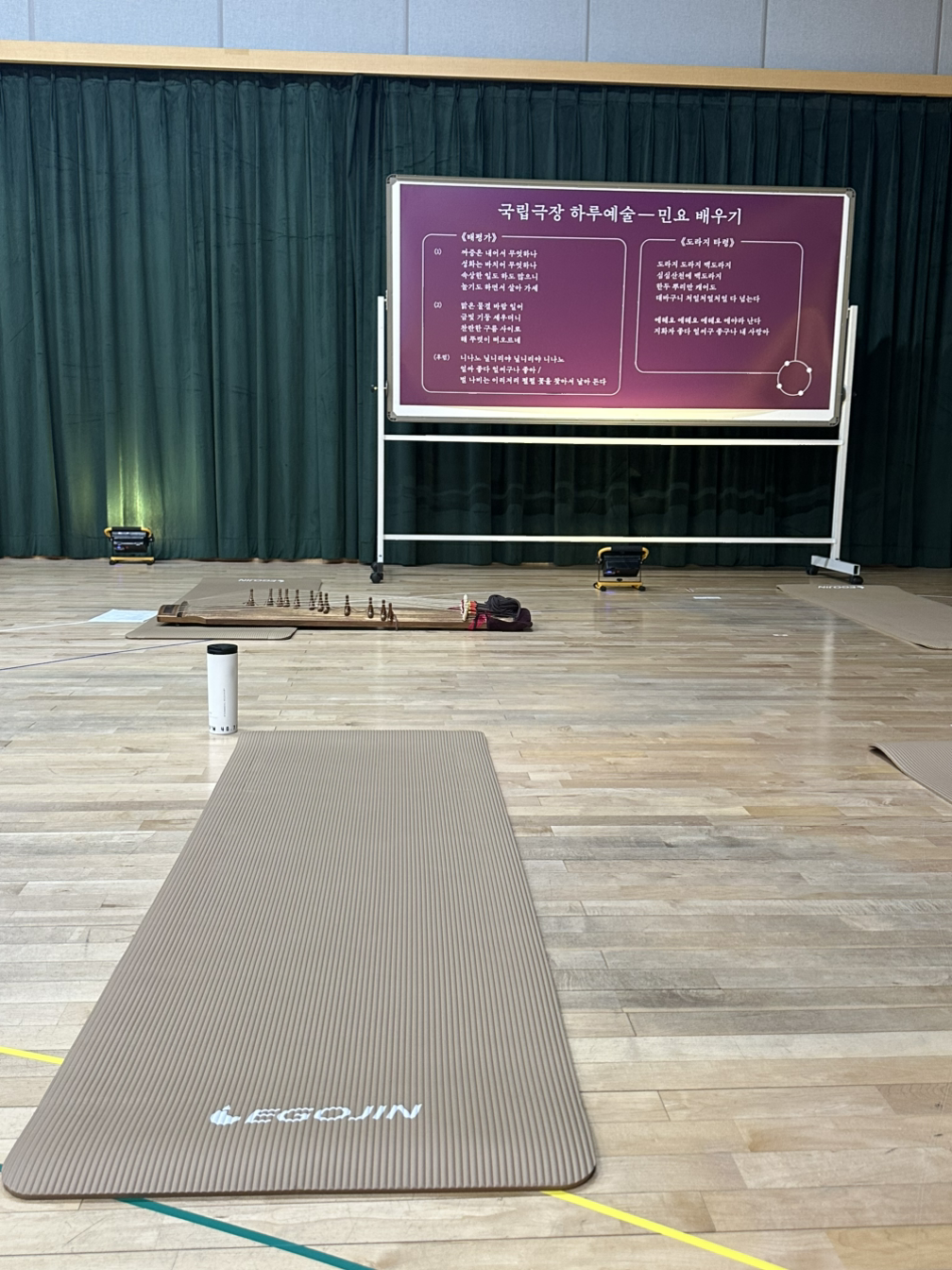 생각지 못한 조합이 커다란 매력으로 다가올 때가 있다. 그것이 한 번도 상상해 보지 못한 조합이라면 더욱 그렇다. 예를 들어 매운 라면에 바닐라아이스크림을 녹여 부드러움을 더하거나, 된장찌개에 토마토를 넣어 감칠맛을 터뜨리는 다소 도전적인 비법처럼 말이다. 바닐라 아이스크림 라면? 이게 맛있다고? 우연히 국립극장 <하루예술> 프로그램 소식을 접했을 때 비슷한 놀라움이 찾아왔다. 가야금과 요가? 이게 가능하다고? 이 물음표는 의심이 아닌 순도 높은 호기심에서 비롯된 것이었다. 궁금한 건 경험해 봐야 직성이 풀리는 나는 1분의 망설임도 없이 '신청하기' 버튼을 눌렀고, 그렇게 새로운 세계로 향하는 문을 열었다.