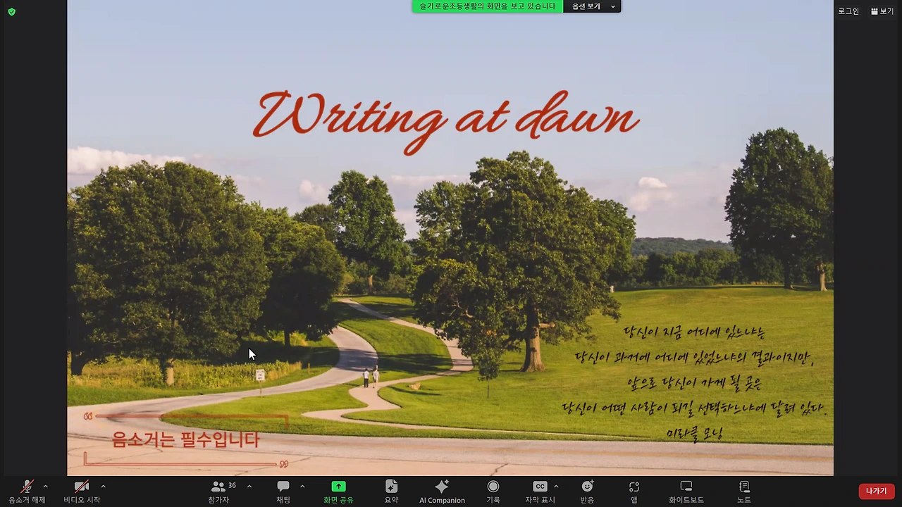 브런치는 먹을 줄만 알던 저를 포크와 나이프 말고 작가의 서랍이 있는 브런치의 세계로 인도해 준 <슬초 브런치>(이하 슬브). 6주 안에 안 쓰던 사람에서 쓰는 사람으로 거듭날 수 있도록 온갖 비밀 장치들이 정교하게 설계된 과정 덕분에 저는 강제적으로 다시 도전하게 됩니다. 미라클 모닝에. 몇 년 전, 한창 코로나로 대면 모임이 어렵던 시기에 제 인생 첫 미라클 모닝을 경험했었습니다. 함께 책 모임을 하는 선생님들과 매일 아침 5시 줌에서 만나 2시간 동안 글을 쓰거나 책을 읽자는 취지였죠. 고백하건대 저는 5시에 제대로 들어가 본 기억은 없습니다. 5시 반에서 6시 사이에 겨우겨우 눈을 뜨고 다 떠지지도 않은 눈꺼풀을 한쪽만 겨우 올리고 줌에 접속해 멍한 상태로 화면을 바라보며 생각했죠. "이게 맞나?" 매일 늦게 자는 올빼미지만 일단 일찍 일어나면 뭐라도 할 수 있게 되는 것이 이른 아침 기상의 기적이라 믿었기에 한 달 정도를 꾸역꾸역 새벽 회의실에 참여했습니다. 힘겨운 한 달을 보내고 선생님들께 선언했죠. "전 미라클 모닝과는 안 맞는 것 같아요." 그리고는 뒤도 돌아보지 않고 아침 쓰기 카톡방에서 나오기 버튼을 눌러 탈출했습니다.