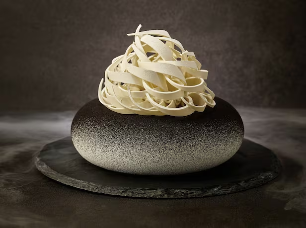 알고 보니 50만 원 케이크가 품은 것은 금이 아닌 트러플이었다. 그것도 평범한(?) 트러플이 아닌 겨울철에만 자연산으로 만날 수 있다는 루마니아산 화이트 트러플. 트러플은 흙 속의 다이아몬드라 불리는 최고급 식재료지만 그중에서도 화이트 트러플은 블랙 트러플보다 4배 이상 비싼 극히 희귀한 식재료라고 한다. ‘더 파이니스트 럭셔리’를 금값으로 만들어주는 요소는 이뿐만이 아니다. 이 작품의 숨겨진 킥은 ‘마시는 황금’이라 불리는 프랑스 최고급 와인, ‘샤또 디켐’. 최고급 디저트 와인이 케이크에 깊고 진한 풍미를 더해준다고. 그러나 뭐니 뭐니 해도 화룡점정은 상단을 섬세하고 화려하게 장식한 화이트 초콜릿이 아닐까? 장인의 손길마저 느껴지는 이 아름다운 장식은 시각뿐만 아니라 미각도 충분히 만족시켜 주는 듯하다.