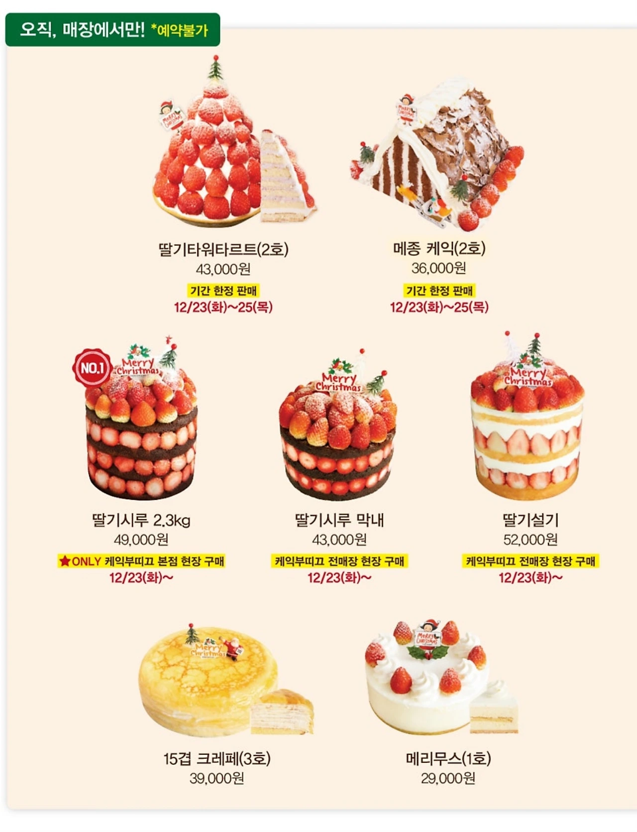 오픈런하면 둘째가라면 서러운 크리스마스 케이크가 있다. 성심당의 시그니처 메뉴이자 최고의 가성비를 자랑하는 ‘딸기시루’가 그 주인공이다. 올해의 ‘딸기시루’는 12월 23일부터 25일까지 딱 3일 간, 성심당 케이크부띠끄에서 예약 없이 현장 구매로만 판매가 된다고 한다. 폭포수처럼 쏟아져내리는 달콤한 딸기 더미의 은총을 누리기 위해 올해도 많은 용자들이 추위와 졸음과 싸워가며 오픈런 대열에 동참할 것으로 보인다.