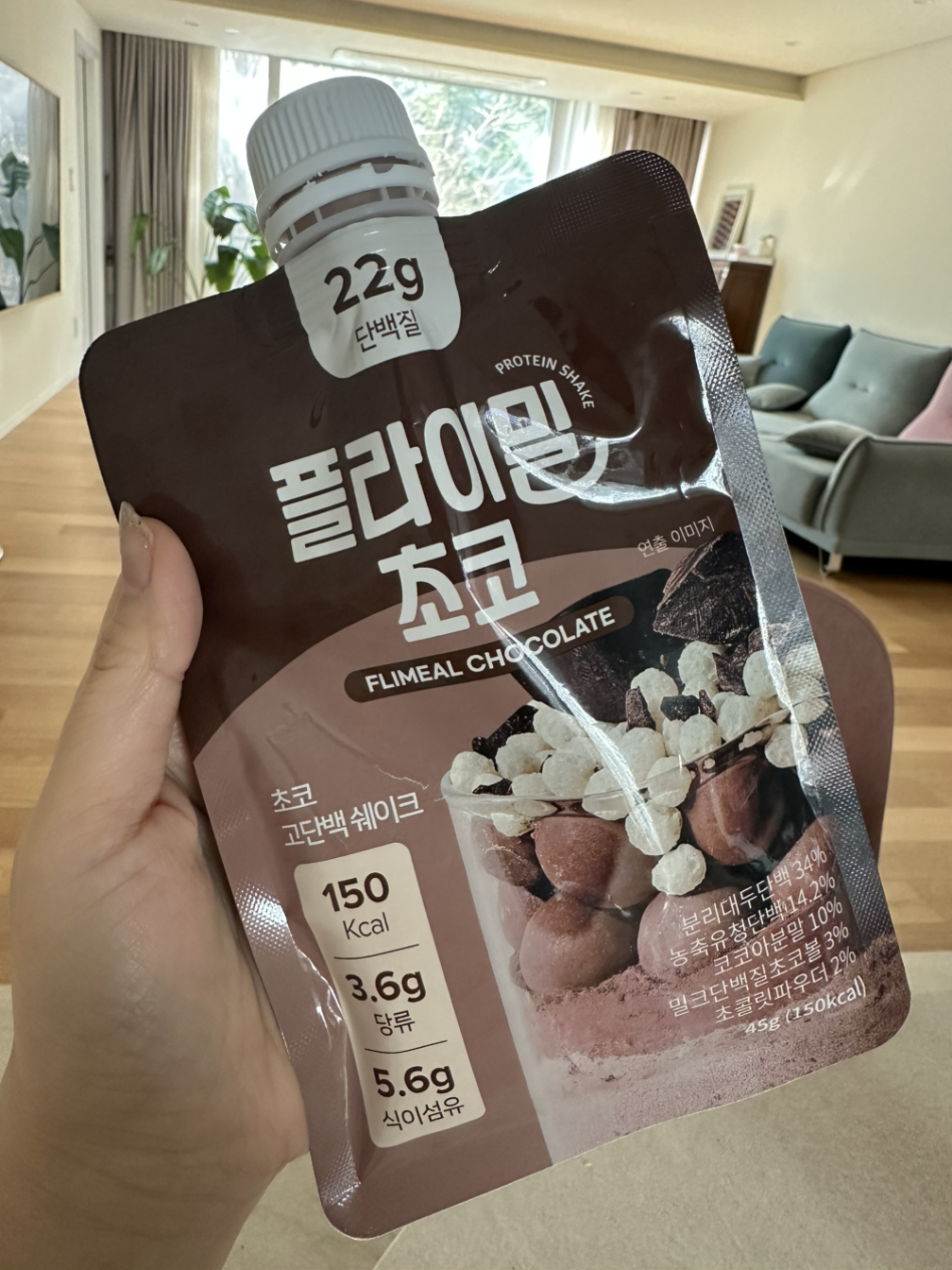 눈이 번쩍! <플라이밀 초코 셰이크>를 처음 맛본 날, 그야말로 심청이 앞 심봉사처럼 눈이 번쩍 떠졌다. 이게 단백질 셰이크라고? 이게 다이어트 식품이라고? 3일 내내 단백질 셰이크만 먹어야 하는 스위치온 초반 3일에 이 아이를 알았더라면. 나의 고통은 절반으로 줄었을 텐데. 애석하도다. 부드럽고 달콤 쌉싸름한 코코아( 아니 아니, 초코 단쉐 ) 한 모금 머금으면 입 안 가득 초코볼과 초코칩이 바삭바삭, 와그작와그작 씹힌다. 다이어트해본 사람들은 안다. 이 '씹는 맛'의 소중함을.