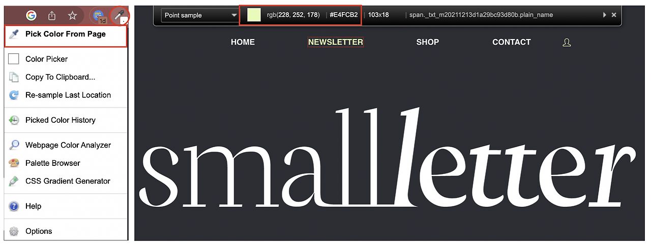 2) 브라우저에서 Picker를 실행하면 어떤 곳이든 색상을 추출하여 색상값을 선택해주세요.