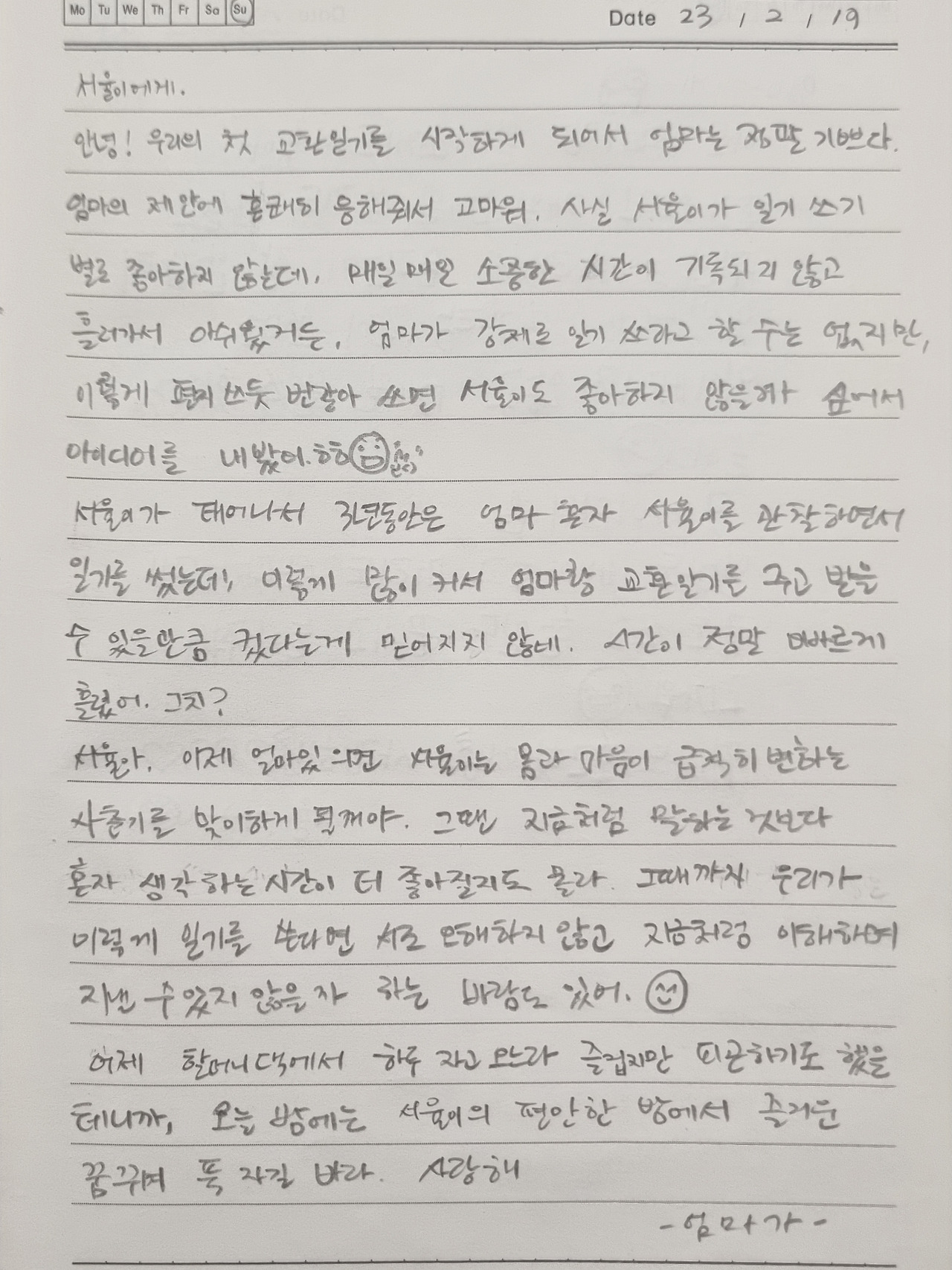 “너 엄마랑 교환일기 써볼래?”