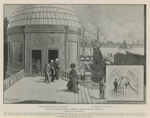 터널은 1902년 완공되었고, 주로 그리니치에서 아일 오브 독스의 부두나 조선서와 같은 사업장으로 출근하는 근로자들이 이용을 했다. 터널이 완공되기 전에는 페리가 유일한 교통수단이었는데, 안개가 심한 경우에는 지연되는 경우가 흔했기 때문에 터널의 완공은 두 지역을 안정적으로 접근할 수 있는 역할을 했다. 페리와 달리 이용료가 없었기 때문에 근로자들의 교통비 걱정도 덜 수 있었다. 다만 터널의 완공으로 인해 이 구간을 운행하던 페리는 역사 속으로 사라졌고, 일터를 잃은 페리 운영자들에게는 상당한 보상금이 지급되었다고 한다.