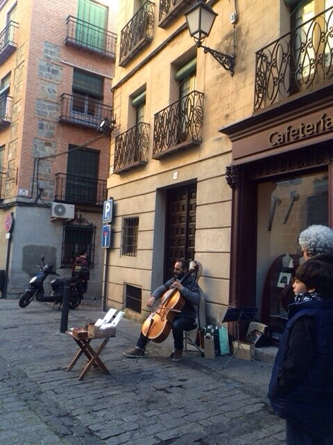 덕분에 여유롭게 도시를 조망한 후 골목길을 걸었다. 길을 잃어도 행복하다더니 과연 그랬다. 거리와 기념품점을 구경하다가 톨레도 대성당 앞에서 첼로를 연주하는 거리의 악사를 만났다. 팝 'time to say good bye' 가 성당 앞 거리에 가득찼다. 가슴이 두근거리고 심장이 환희로 넘쳤다. 아, 이래서 다들 어떻게든 살아보려는 것인가 하는 생각마저 들었다.