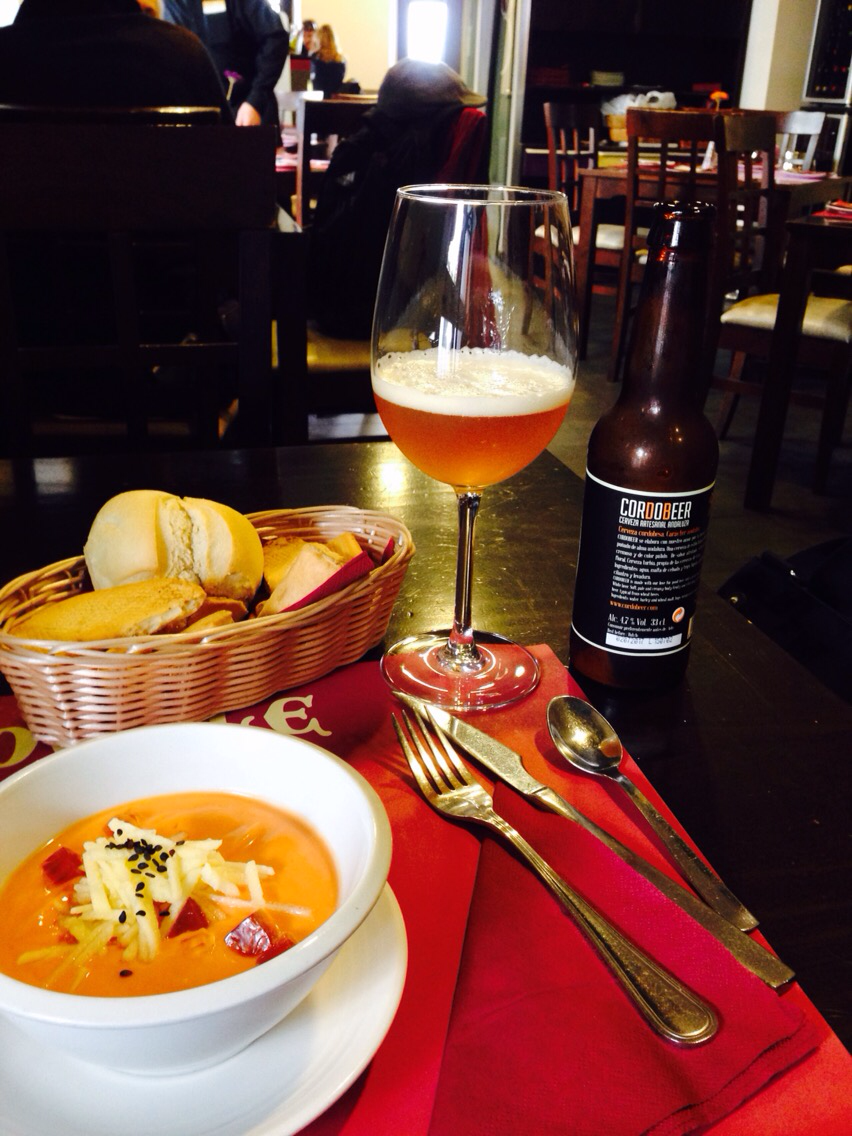 아침부터 크로와상과 과일 몇 조각만 먹어서 배가 고프다. 메스키타에서 나온 후 맛집으로 알아둔 곳에 갔다. 혼자 들어가는 것이 아직은 어색하지만 그냥 앉았다. 안달루시아 지방 전통 음식이라는 토마토와 치즈가 섞인 가스파초와 여종업원이 추천해준 문어 요리, 맥주를 주문했다. 식전빵으로 빵과 쿠키가 푸짐하게 나왔는데 땅콩이 들어간 듯한 쿠키가 특이하고 맛있었다. 문어는 맛있었지만 짰고 가스파초는 좀 느끼해서 남겼다. 과일향이 나는 맥주는 정말 맛있었다. 스페인 술이 너무 맛있어서 요즘 술만 느는 것 같다. ㅋㅋ