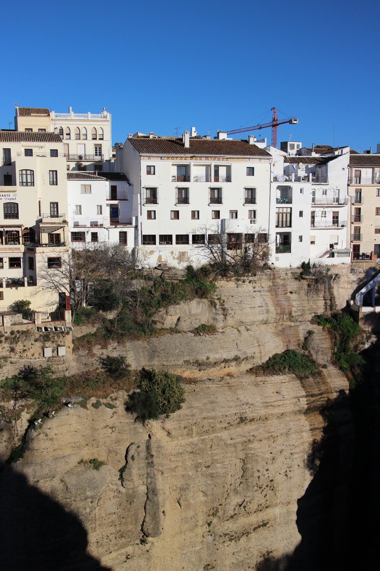 맞은편에 있는 건물이 숙소인 돈 미구엘 호텔. 조식 포함 11만원 정도의 가격이고 시설이 좋지는 않지만 전망 하나로 모든 것이 다 커버된다. 맞은편의 론다 파라도르는 다리 전망 방을 구하기 힘들다 하고 너무 비싸서 여기를 선택.