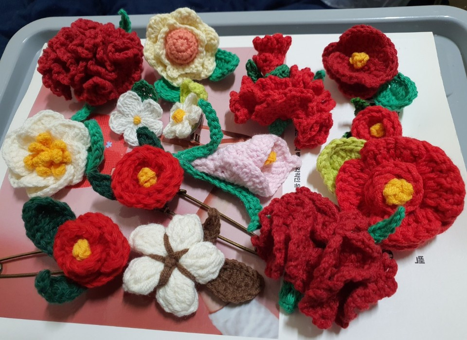 사실, 반대표는 자수만큼 뜨개도 엄청난 실력자다. 자수와 뜨개를 섭렵했으니 작품들이 고급스럽고 완성도가 넘쳐난다. 그녀는 친정 엄마가 사는 시골에 가면 흐드러지게 피어있는 꽃발을 찾는다. 꽃잎을 자세히 바라보고 말을 건넨다. 예쁜 모습을 사진에 담고, 스케치를 해 본다. 그대로 실과 바늘로 아름다운 작품을 탄생시킨다. 그래서 그녀는 특히 꽃이 많이 피는 계절을 좋아한다. 봄에는 꽃을 구경하러 다니느라 종종 바쁘다.
