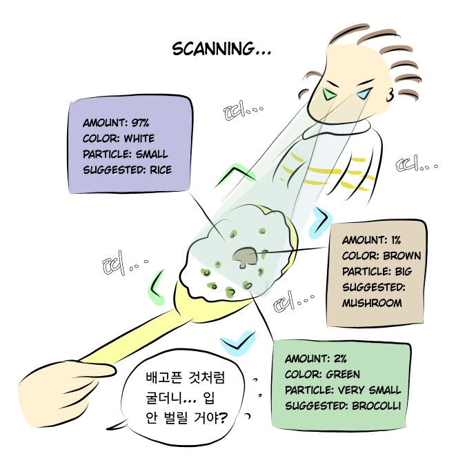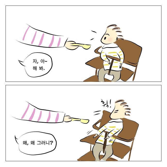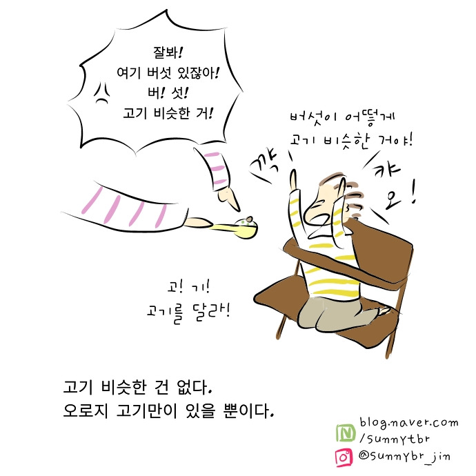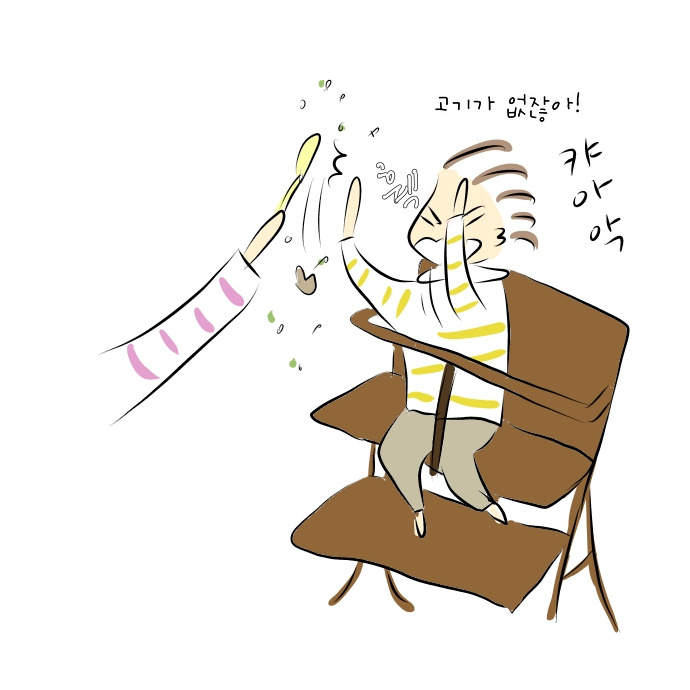 입에 넣어주는대로 먹던 착한 아기 시절은 갔습니다... 숟가락을 들이밀면 아무리 배가 고파도 일단 뒤로 물러서서 꼼꼼이 스캐닝 한 후 고기가 안 보이면 바로 되돌려 보내는 17개월 수현이입니다. 아주 성질 더럽습니다... 두부까지는 마지 못해 받아주는데 버섯 같은 걸로는 택도 없습니다. 맨날 밥먹을 때마다 고기! 요기 고기! 하면서 확인시키고 있네요.