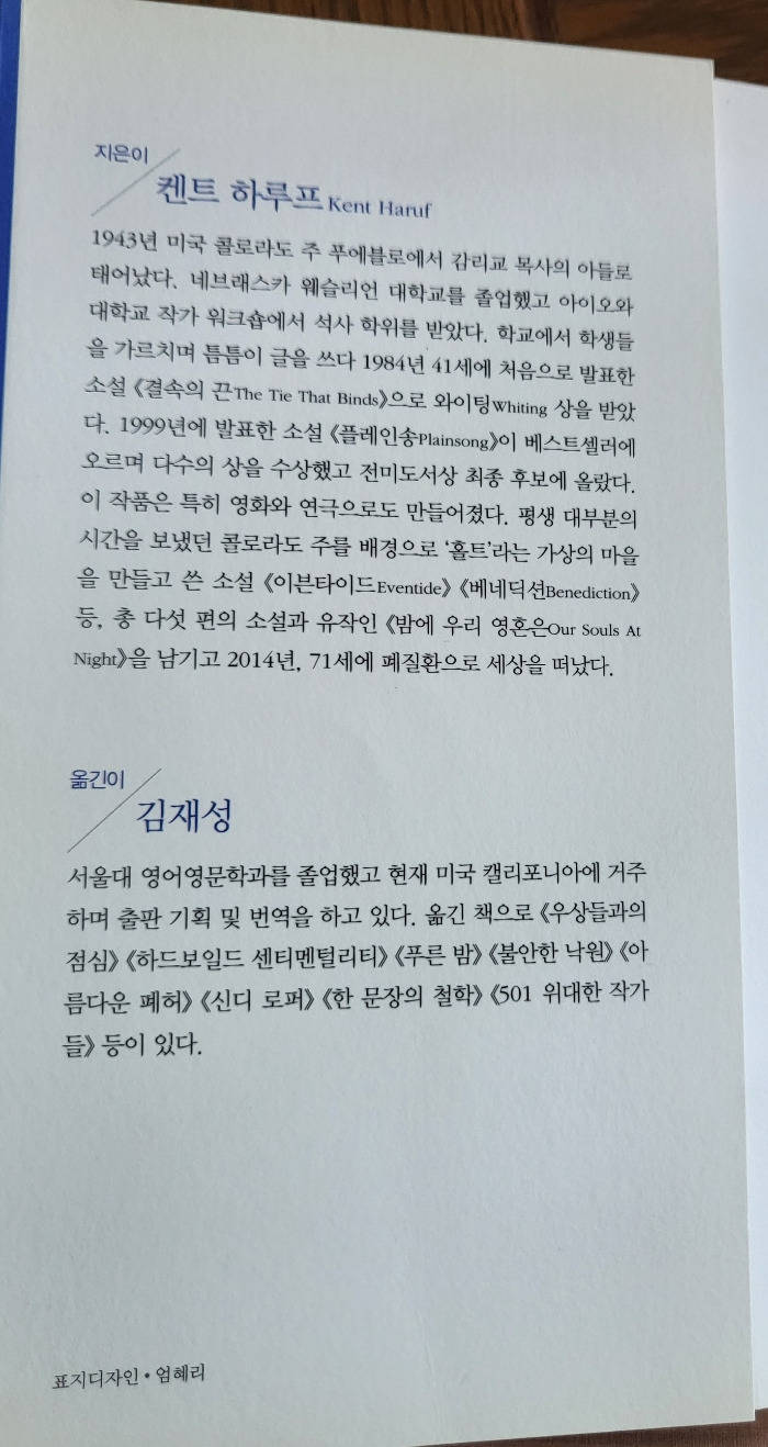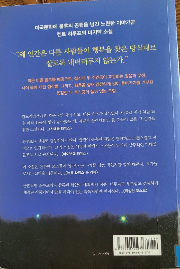 미국문학에 불후의 공헌을 남긴 노련한 이야기꾼 켄트 하루프의 마지막 소설