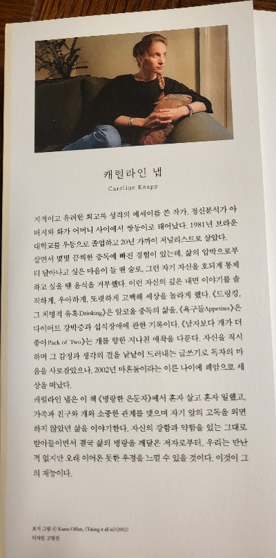 캐럴라인 냅은 이 책 《명랑한 은둔자》에서 혼자 살고 혼자 일했고, 가족과 친구와 개와 소중한 관계를 맺으며 자기 앞의 고독을 외면하지 않았던 삶을 이야기한다. 자신의 강함과 약함을 있는 그대로 받아들이면서 결국 삶의 명랑을 깨달은 저자로부터, 우리는 만난 적 없지만 오래 이어온 듯한 우정을 느낄 수 있을 것이다. 이것이 그의 재능이다.