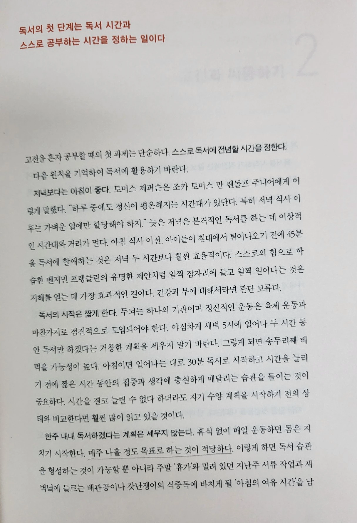 독서의 첫 단계는 독서 시간과 스스로 공부하는 시간을 정하는 일이다.
