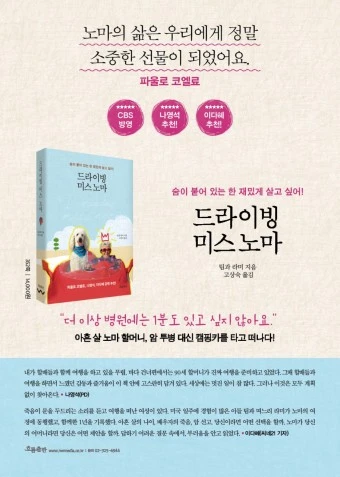 아흔 살 노마 할머니는 여행을 통해서 진정한 ‘미스 노마’로 거듭난다. 2015년 8월부터 1년간 32개 주 75개 도시를 돌아다니는 이야기를 아들 팀이 ‘Driving Miss Norma’로 페이스북에 올리자 전 세계 50만 명이 이 특별한 여행기를 팔로워 하면서 노마 가족의 여행을 격려하고 후원하고 축복하였다. 어머니와의 마지막 시간을 동행하면서 불꽃처럼 피어나게 했던 노마 할머니 가족의 이야기는 많은 사람들에게 인간다운 삶의 의미를 깨닫게 하였다. CBS News, GNN News, MBC News 등 전 세계 주요 매체에 소개되었다. (교보문고 서평 참조)